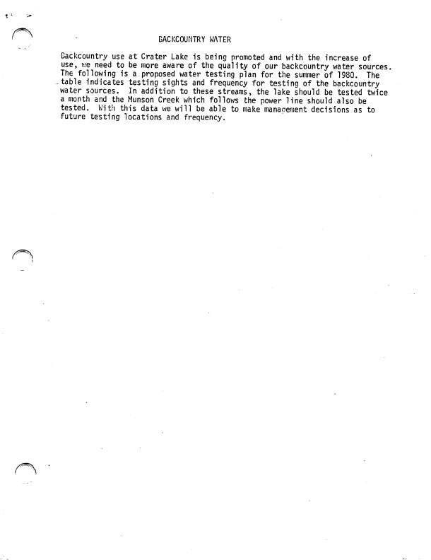 • Backcountry Water Study
