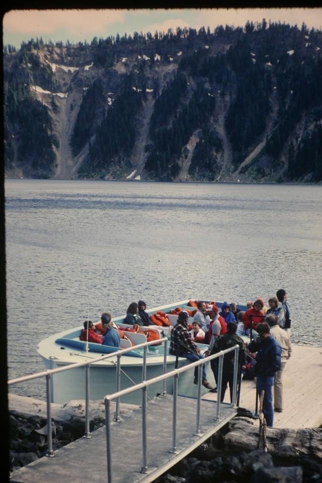 When I (Lloyd Smith) worked on the trail crew at Crater Lake National Park we used the Ranger (Naturalist) Boat for some of our lake duties. From former ranger Owen Hoffman: In the summer of 1967, it was deemed unusable and beyond repair. It was sunk to make room for the OSU Boston Whaler, which had been recently lowered into the lake by sliding it down over snow banks in late Spring of 1967, to use the NPS boat house on Wizard Island for winter shelter and storage. The old Naturalist’s research boat was featured in the 1966 edition of “America’s Wonderlands” by National Geographic. It was photographed in the vicinity of the Phantom Ship with Bruce Black’s wife and daughters on board….cont…