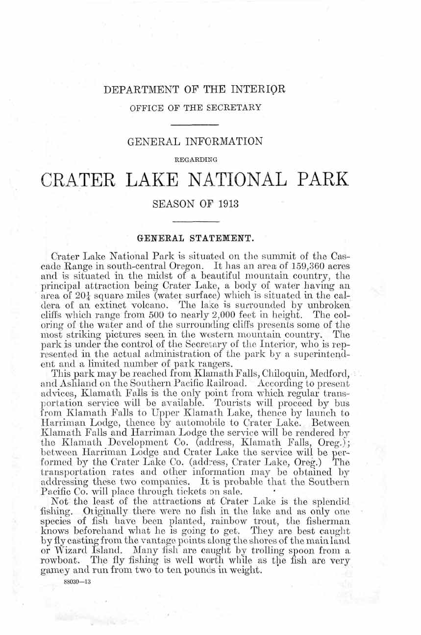 Crater Lake Information Brochure – 1913