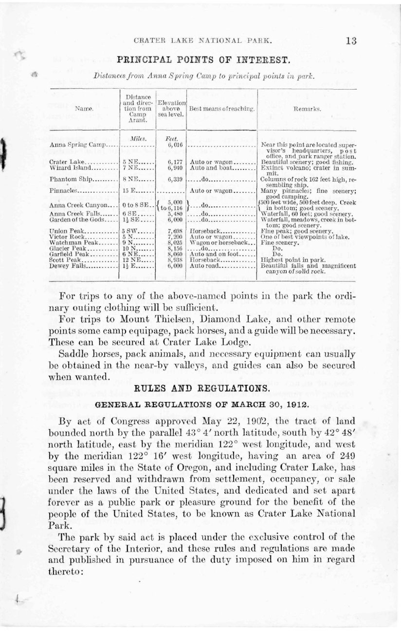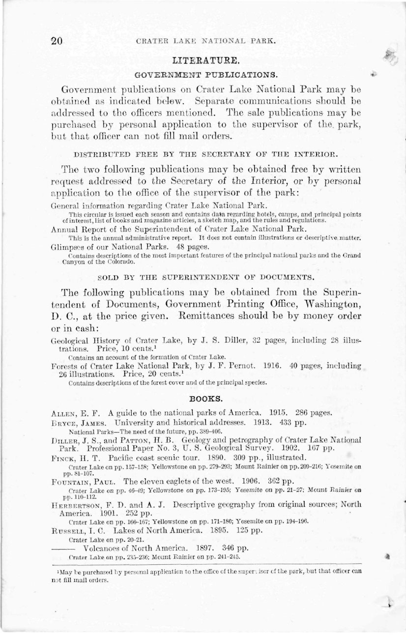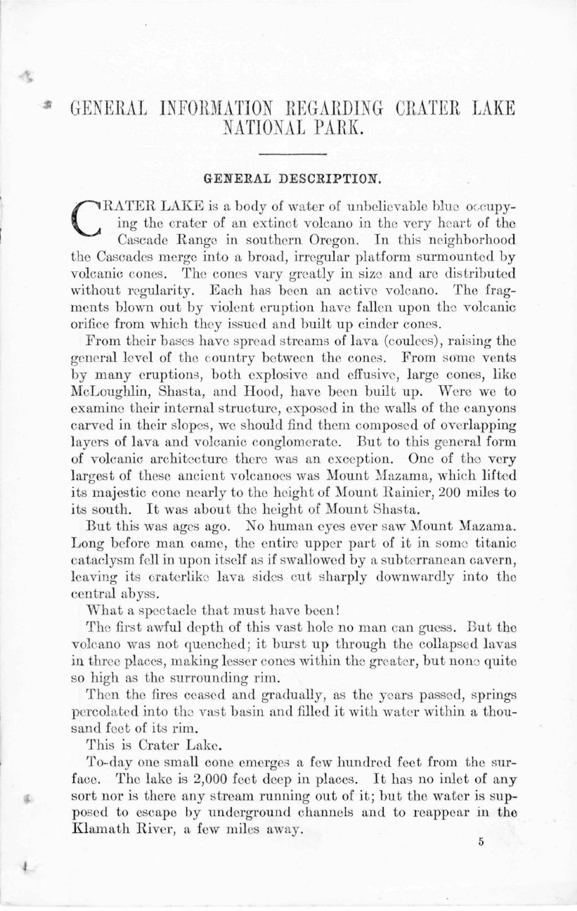 Crater Lake Information Brochure – 1916