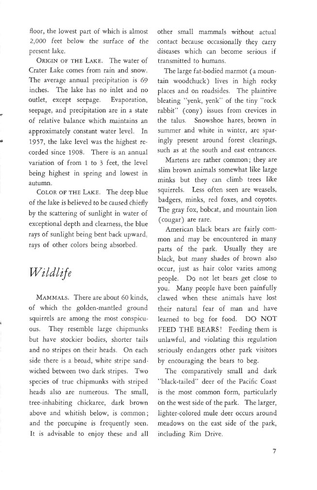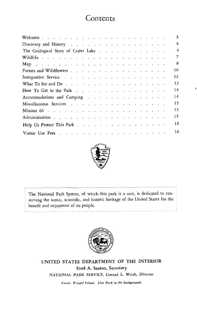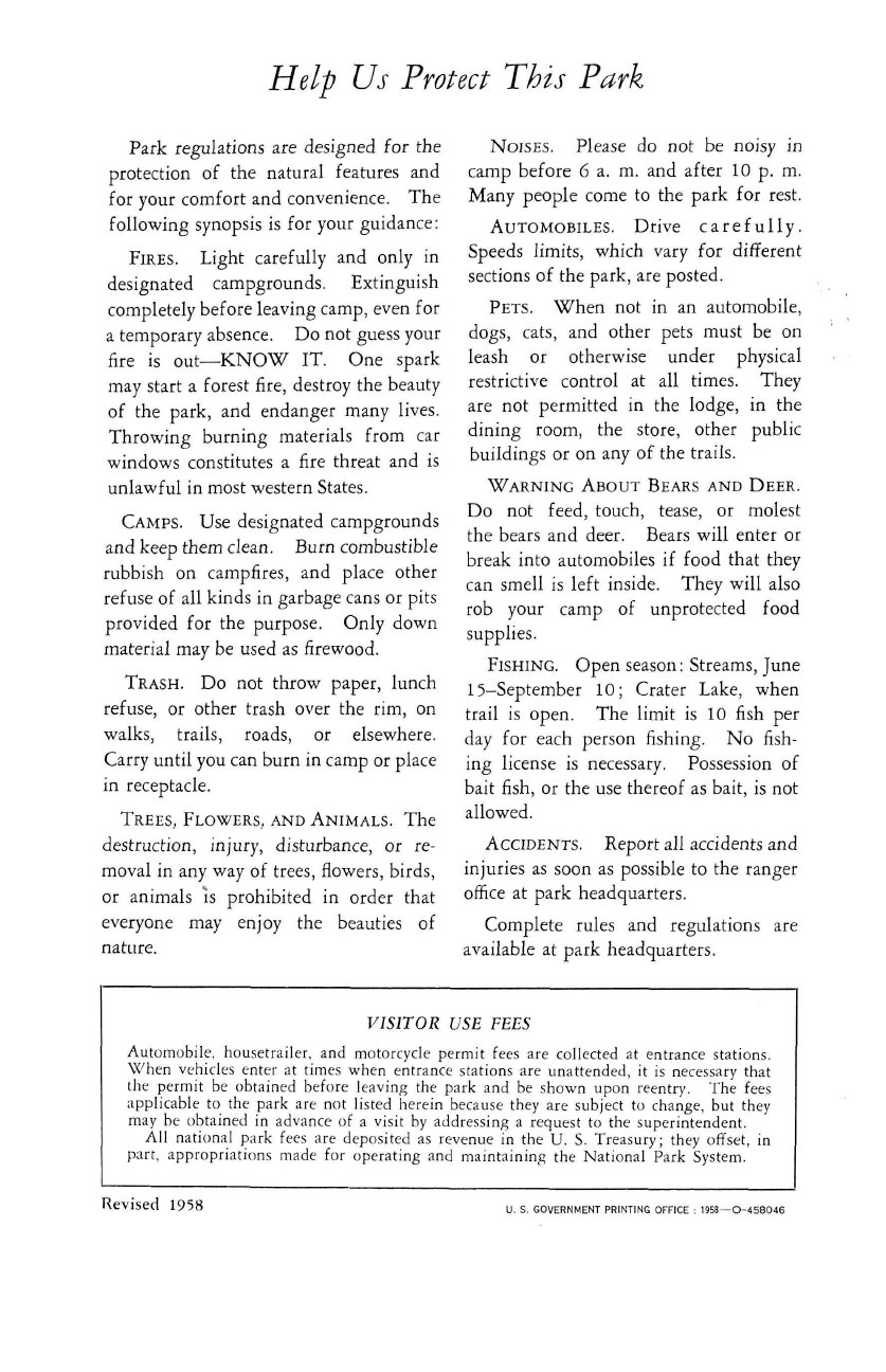 Crater Lake Informational Brochure 1958-1