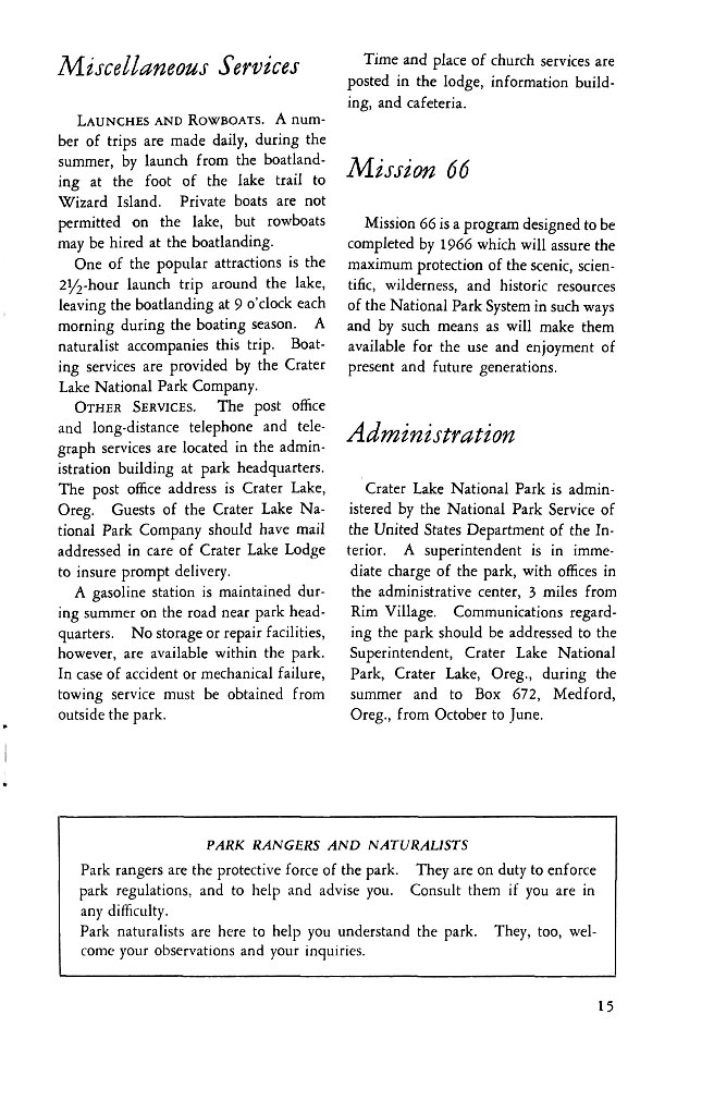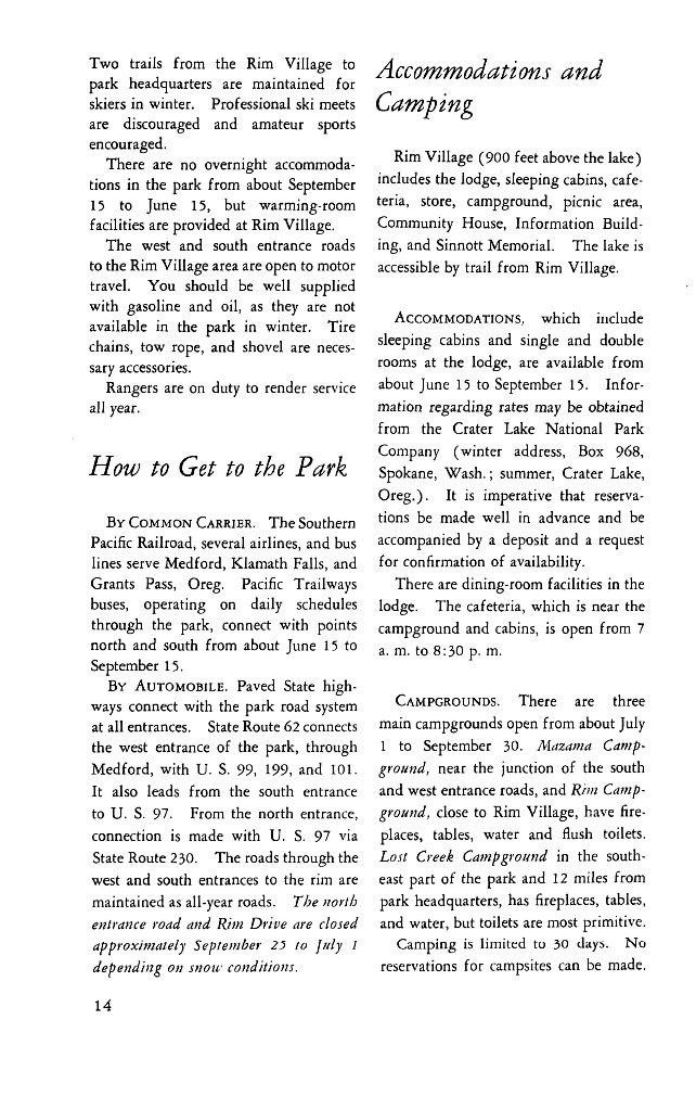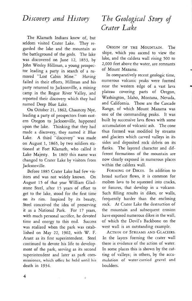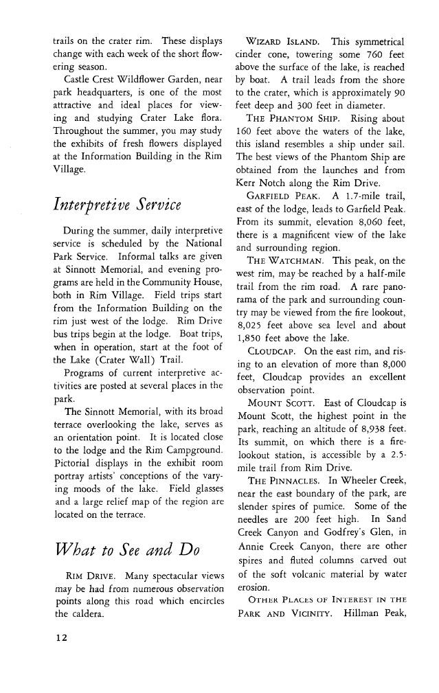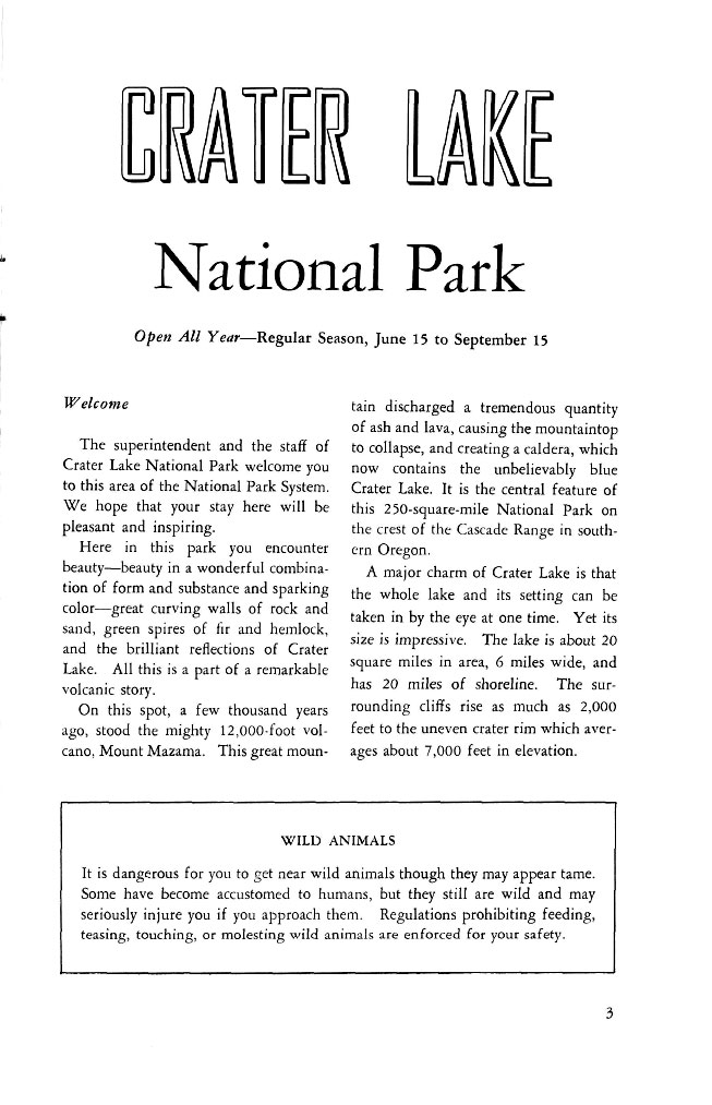 Crater Lake Informational Brochure 1957