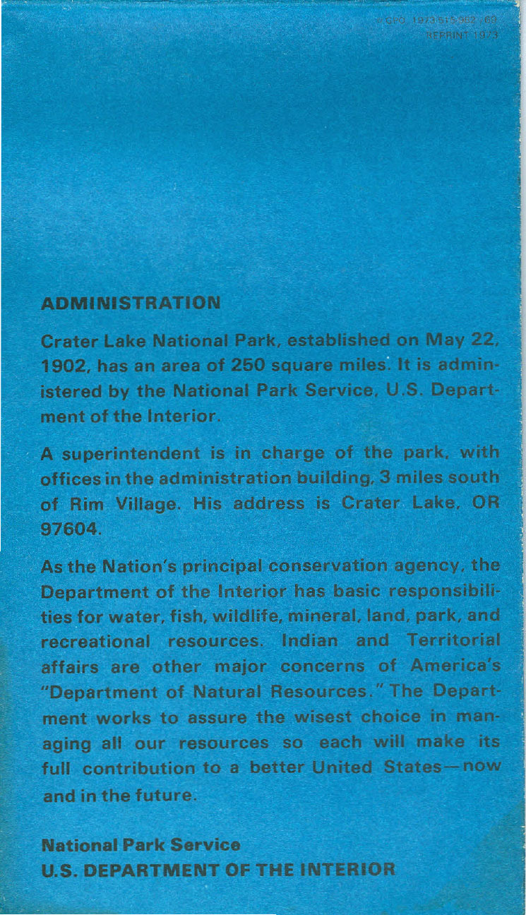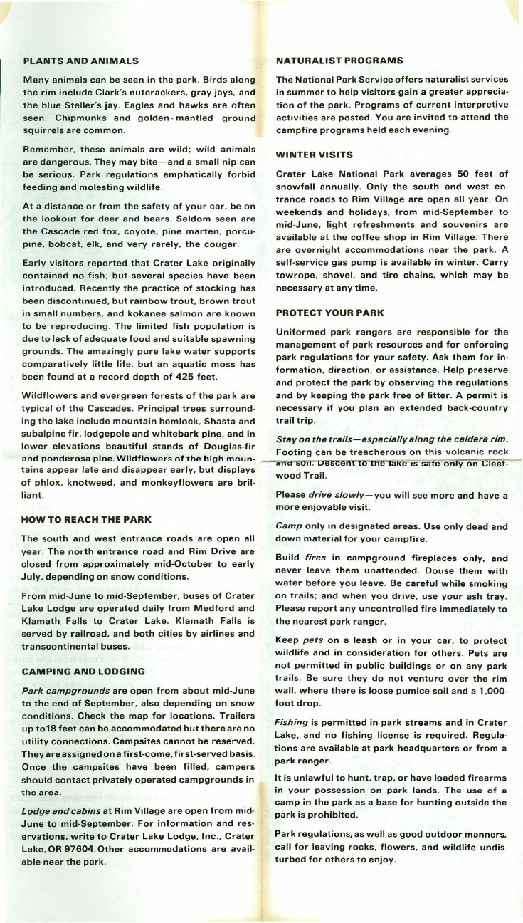 Crater Lake Informational Brochure 1973-1Crater Lake Informational Brochure 1973-2Crater Lake Informational Brochure 1973-3Crater Lake Informational Brochure 1973-4Crater Lake Informational Brochure 1973-4Crater Lake Informational Brochure 1973-4Crater Lake Informational Brochure 1973-4