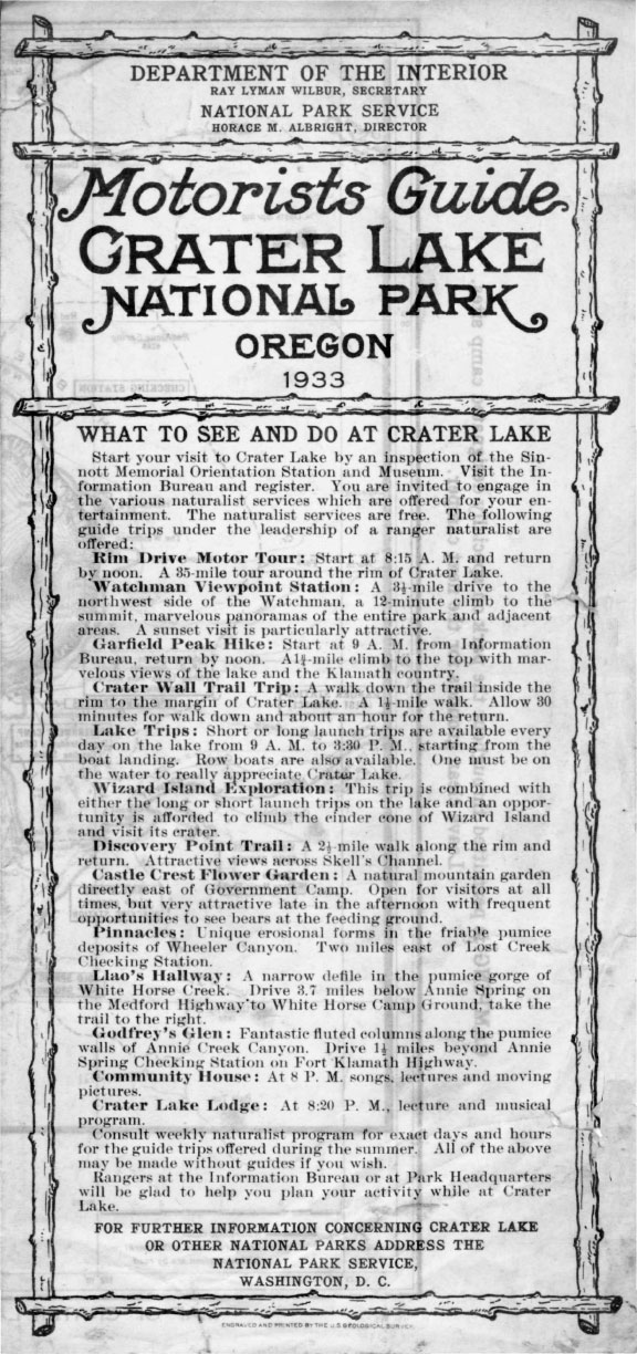 Produced by the National Park Service, these brochures were early attempts to get visitors to visit their national parks. What a difference today, when parks are approaching their visitor-limits, but early leaders, Stephen Mather and Horace Albright realized the public would advocate for more park support if they came.