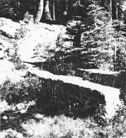 Establishment of the Castle Crest Wildflower Garden in 1929 may have been part of an NPS interpretive program to provide accessible and educational nature trails. Other gardens developed at this time include a garden at the Ahwahnee Hotel in Yosemite Valley and an area adjacent to the Museum and Administration building at Giant Forest in Sequoia National Park. Both garden designs used transplanted materials from other areas in the parks to exhibit a “profuse” array of native flowers and to attract wildlife. In contrast, park records indicate that plant materials of the Castle Crest garden were not imported but are indigenous to the site. Trail construction and interpretive devices constitute the only design elements of the site.