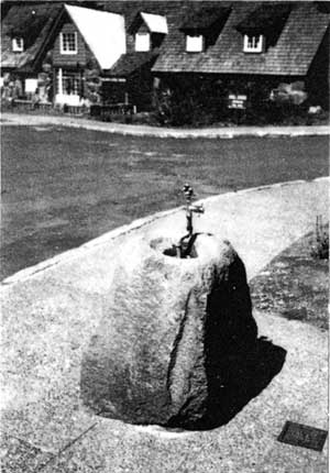 Extant boulders once used as a traffic control device for the old entrance to the plaza |