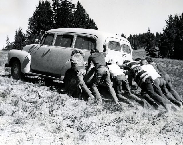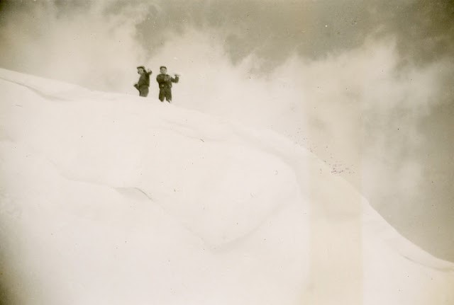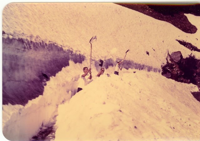 Our first encounter with Crater Lake. Fell in love. It was a mysterious place. 1947. Walked the Old Lake Trail in front of the cafeteria, 1.6 miles. I was on the last crew that shoveled it out and opened it in 1959. On the snow bank in front of the cafeteria, 1949.