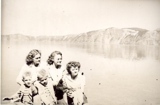 “Crater Lake 1947 Lloyd Larry Bonnie Rose Elmer” This was our first trip to Crater Lake and we walked the 1.6 mile trail. I still remember it well.