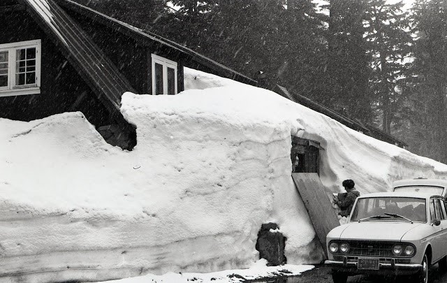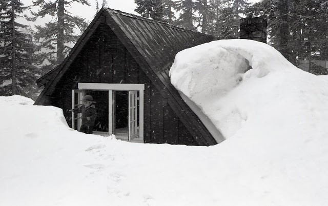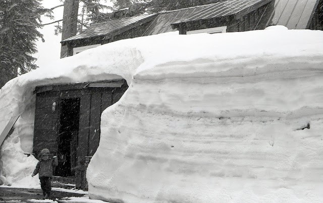 As many of you know, I started working at Crater Lake National Park in 1959. I worked on the trial crew and then became a ranger for a 23 year career. After 56 years I still volunteer with my twin brother, Larry Smith. When I moved my family up to the park in June, there used to be some real snow. Here are a few photos from 1971 and some views of our cabin in JUNE. Kenneth is about 3 and is standing in the second floor window on the snow bank.
