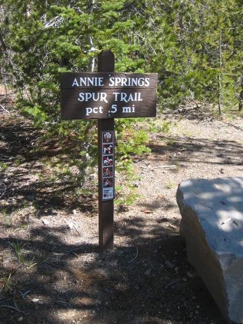 “The Annie Spring Trail was completely rerouted off the old road bed and away from the water towers in 2001. It now starts near Annie Spring and the road bridge and switchbacks up the hill and next to some meadows before intersecting at the PCT. Completely different trail than the Annie Creek Canyon Trail downstream. The naming convention AST_00+00_TH_01 translates to AST = Annie Spring Trail, 00+00 = feet from trailhead (trailheads are usually the starting point at 0 feet, 01+23 is 123 linear feet from the trailhead for example), TH = Trailhead (or other such feature along the trail), 01 is just if there are multiple pictures of the same feature. This really pertains to the written inventories I have that need more work. Not all the pictures I upload will have the naming convention, but are usually in order from start of trail to end of trail.” Jennifer Gifford, CRLA Trails Supervisor, February 16, 2016 [CLI wishes to thank Jennifer for contributing these photos. Rarely do we get to see trail images as good as these.]