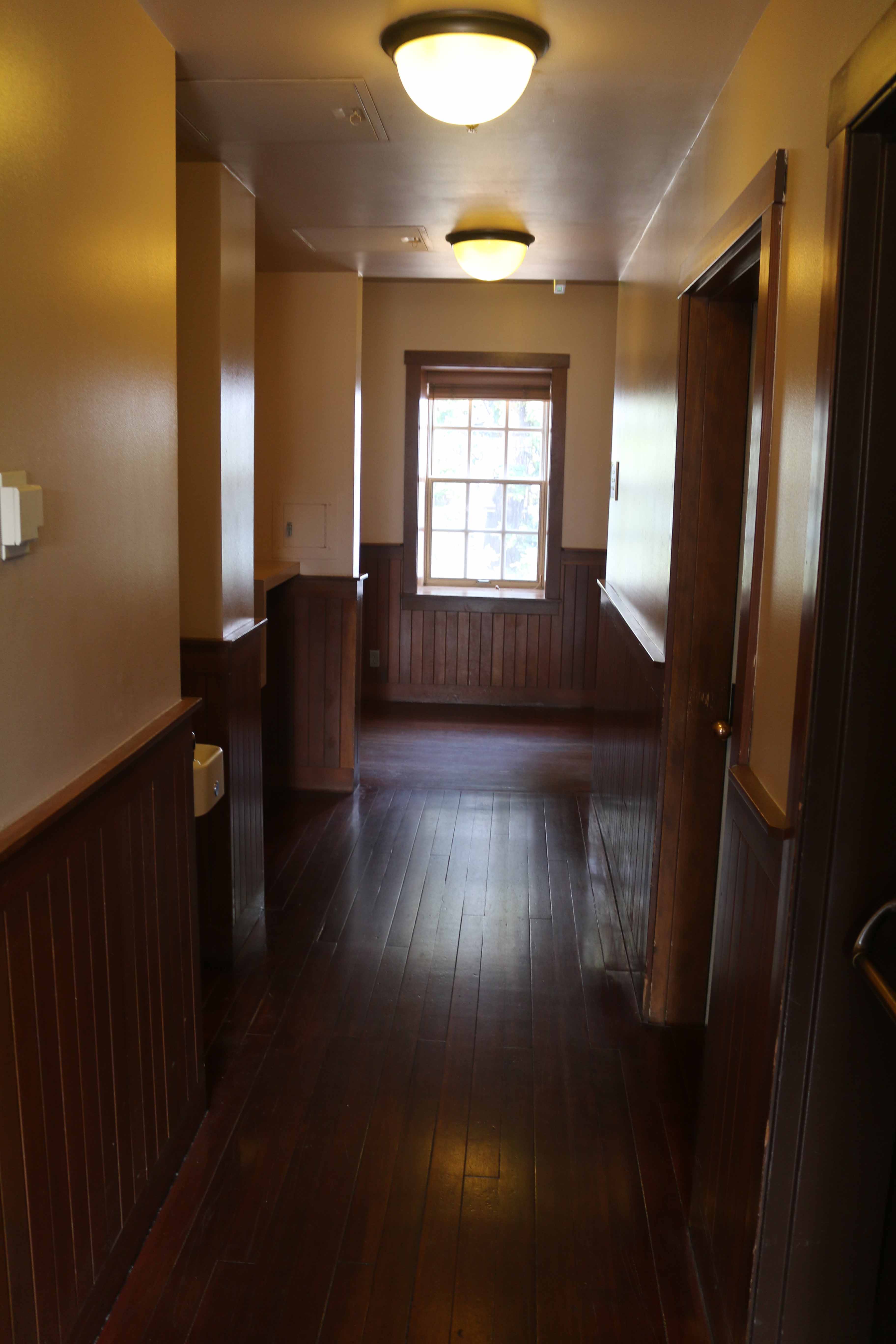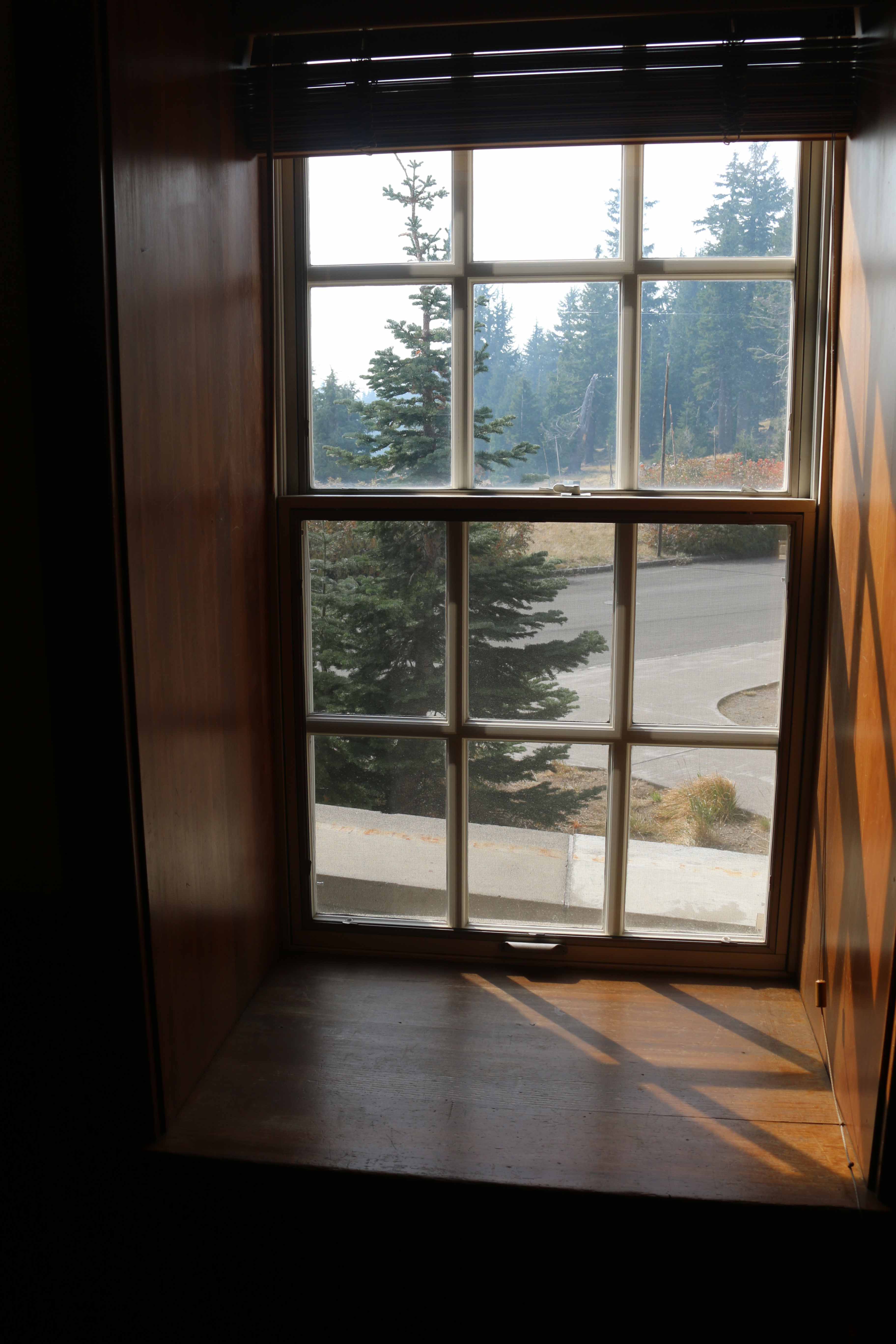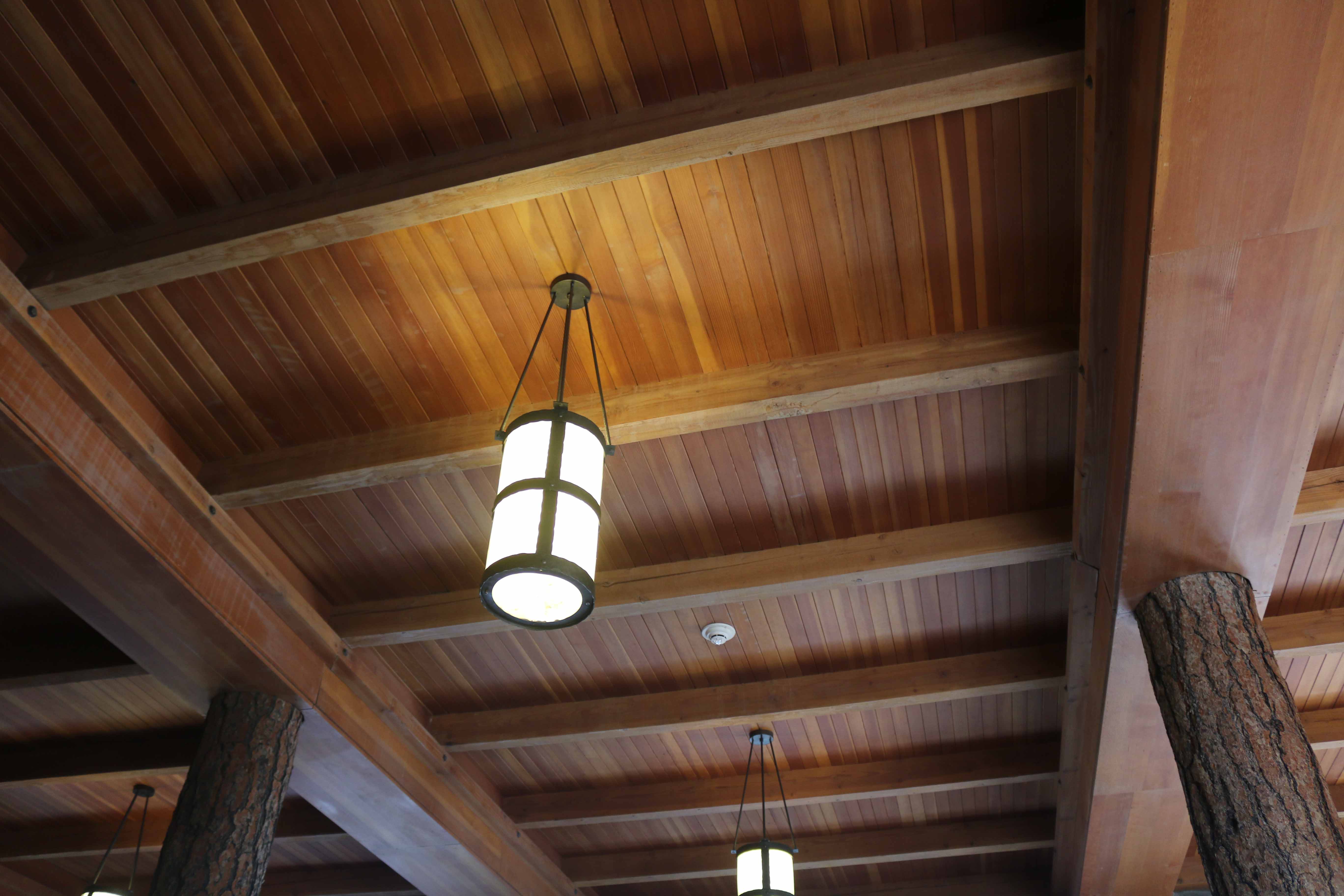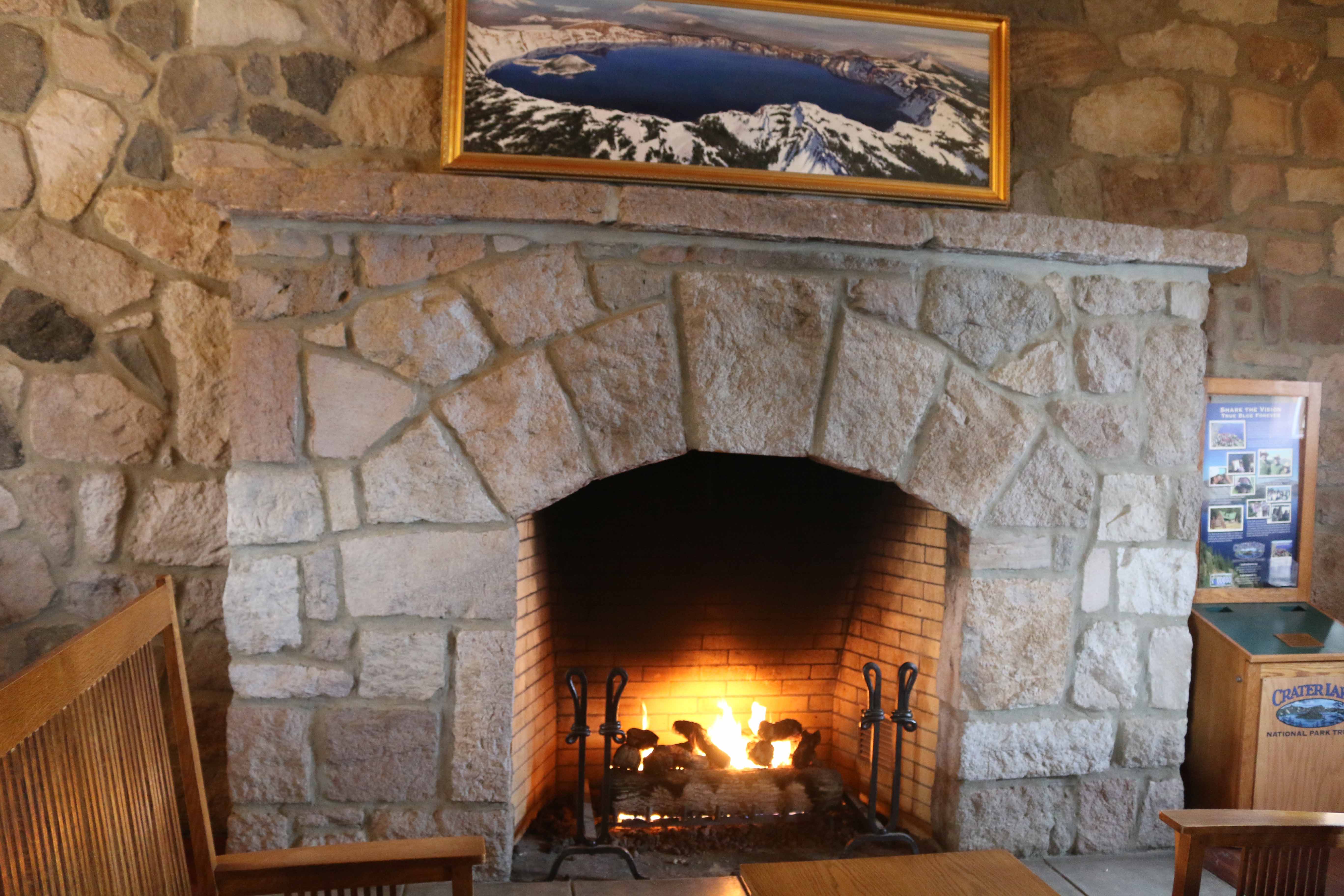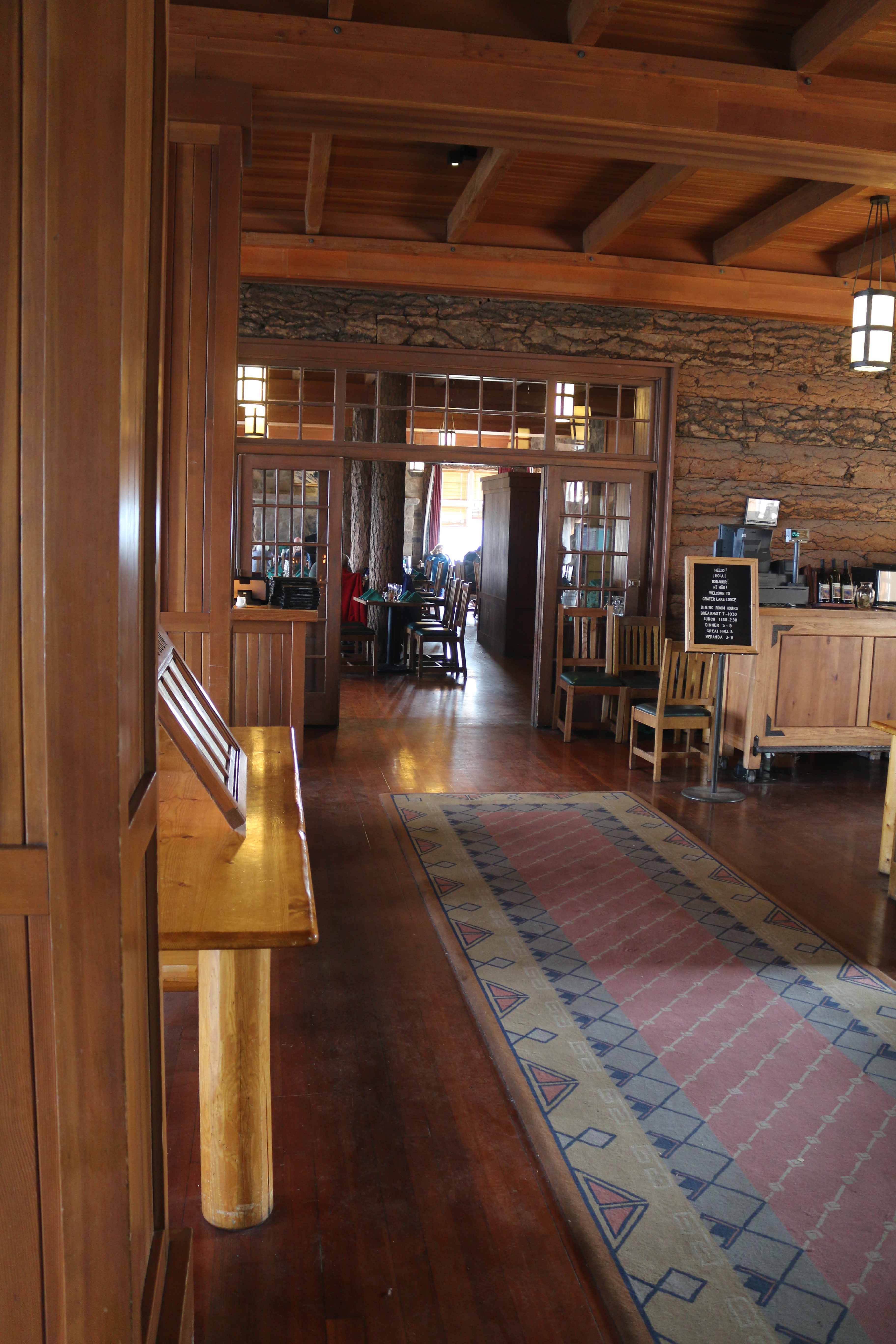 At the east end of the Rim Village is Crater Lake Lodge, a hotel whose irregular shape forms a slight crescent. Its exterior appearance features stone masonry on the ground floor’s outer walls and a roof punctuated by numerous shed dormers which give visual interest to the wood shingled jerkin head configuration. Massive stone masonry in chimneys on the east and south facades draw the eye, as do overhanging and bracketed eaves. Multipaned windows, which are arched with stone lintels on the ground floor, are another character-defining feature of the original hotel that was reconstructed in a NPS rehabilitation project that took place between 1991 and 1994. Much of the historic fabric in the lodge was lost during this project, something which also brought about drastic changes in the building’s plan, mass, and structural character.