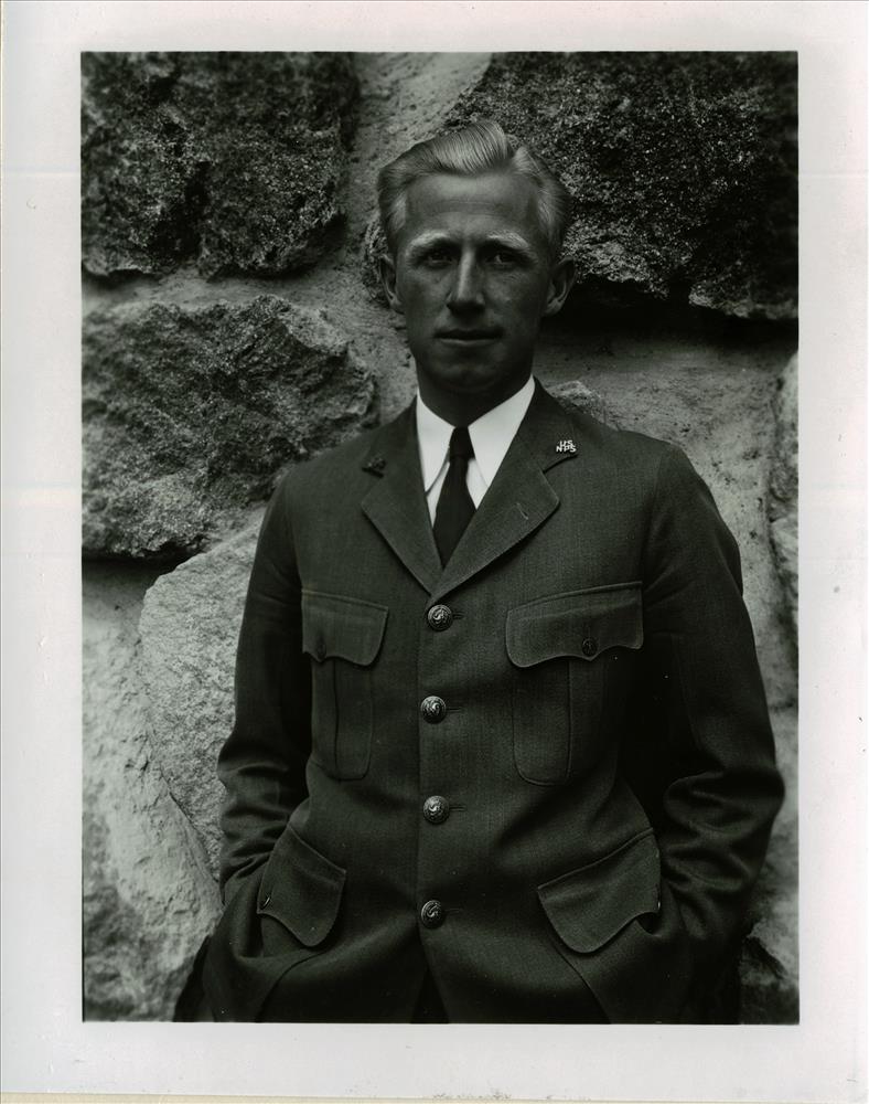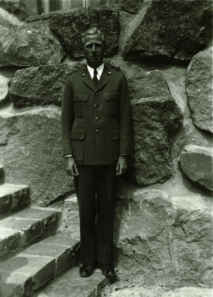 Ranger Rudy Lueck at Watchman Lookout in Crater Lake NP, 1936