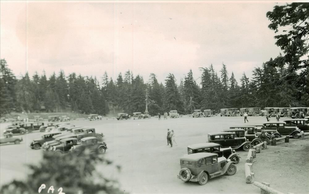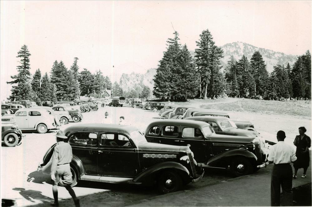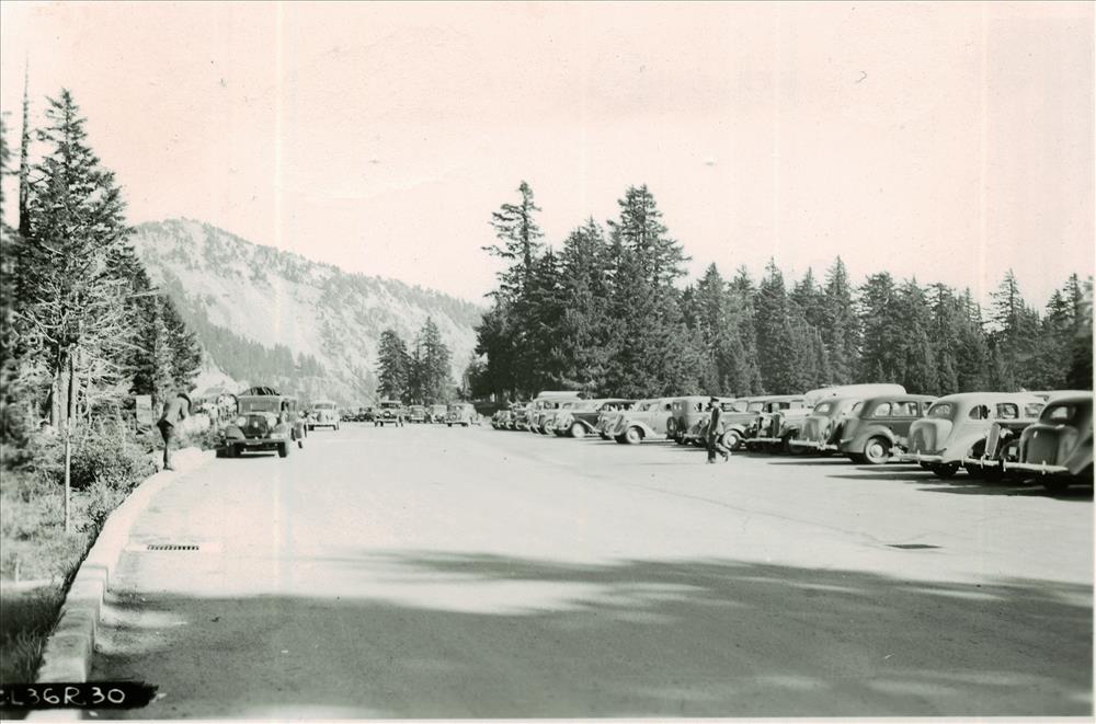 Parking area in Crater Lake NP, circa 1936 Frances Lange