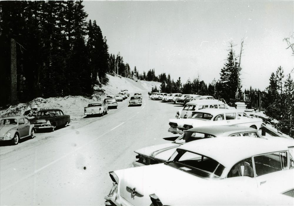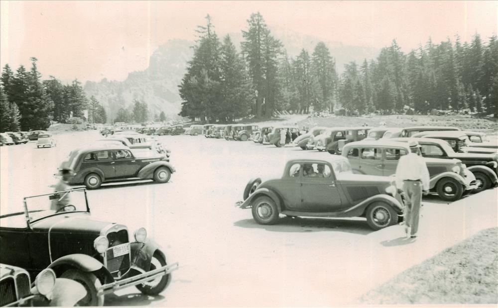 Visitors parked in the Rim Village area in Crater Lake NP (date unknown)