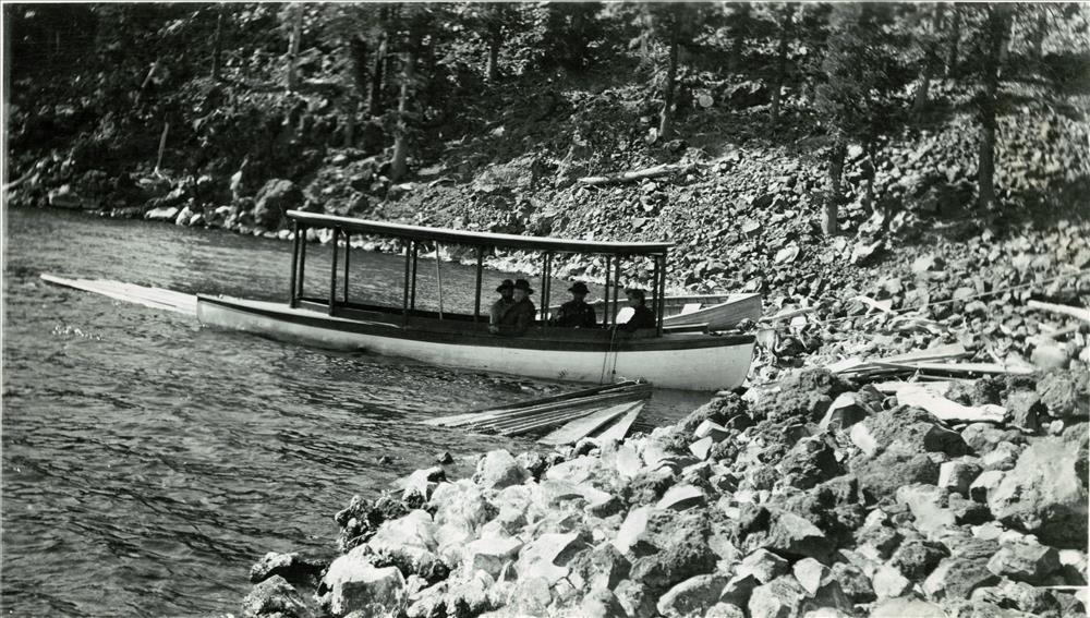 Getting ready to put the Cleetwood away for the winter in Crater Lake NP, 1908 Steel in bow, Woodbury 2nd photo Dewey Huffman