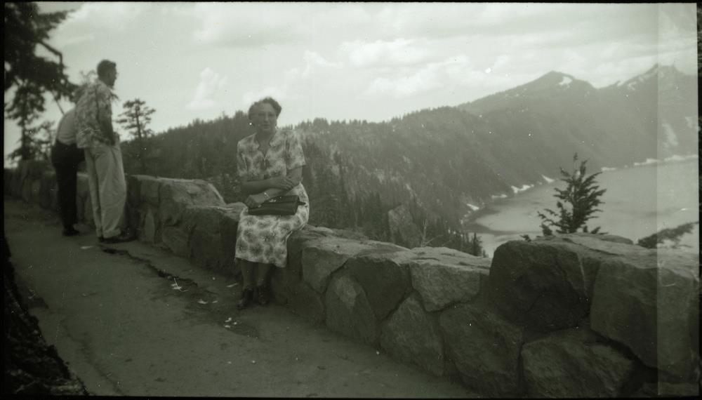 Maude McDonald at Rim Village in Crater Lake NP, 1956