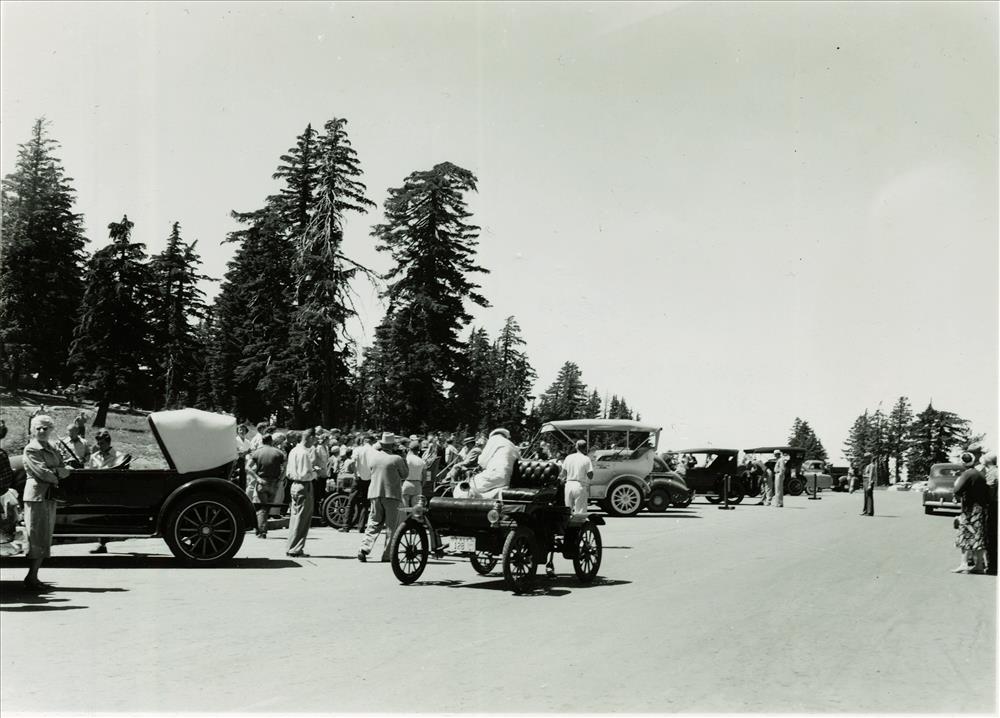 Cars in Rim parking area in Crater Lake NP, 1936 2