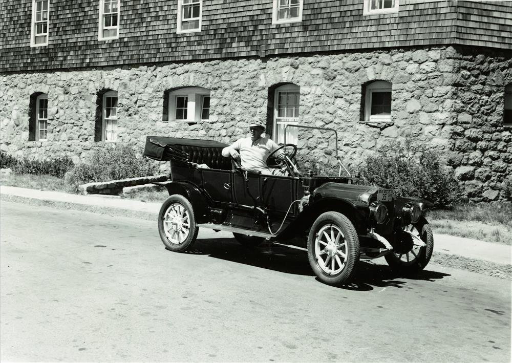 Old Car Club Member in front of the Lodge in Crater Lake NP, circa 1951