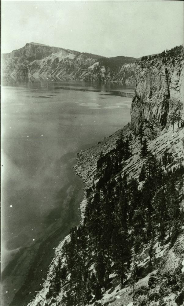 Lake and shoreline in Crater Lake NP (date unknown) probably near Wineglass, Parkhurst photo probably