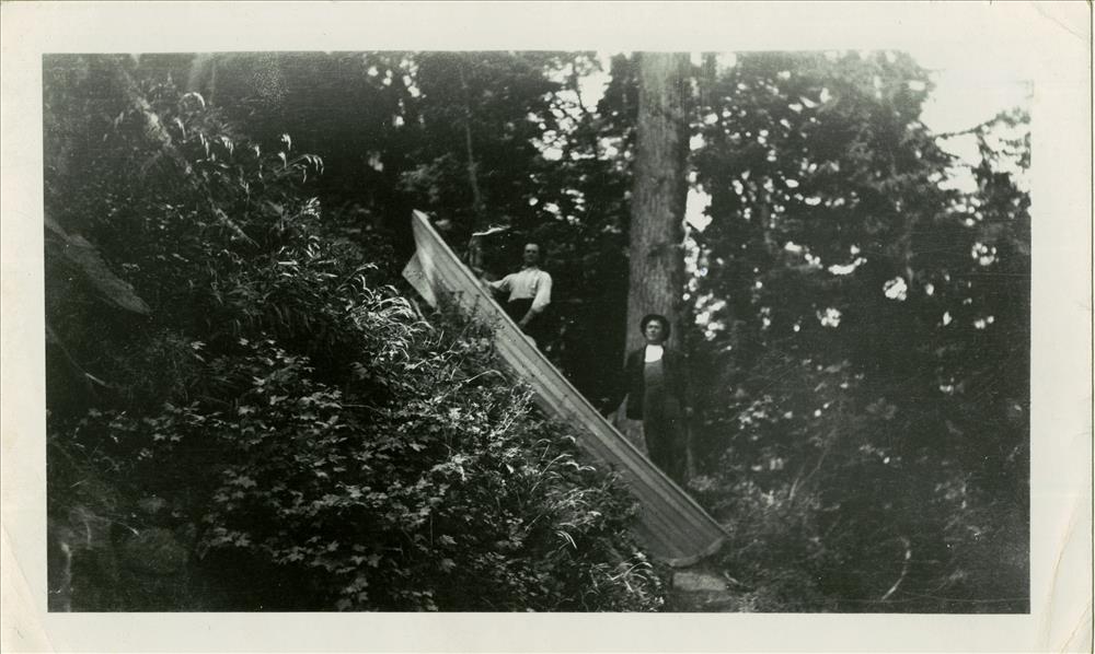 Lowering row boat Dewey Huffman built at camp about 1.5 miles from Rim Lower – Dewey Huffman Upper – Judge Short photoMary Short August 1908 Gift Blanche Huffman