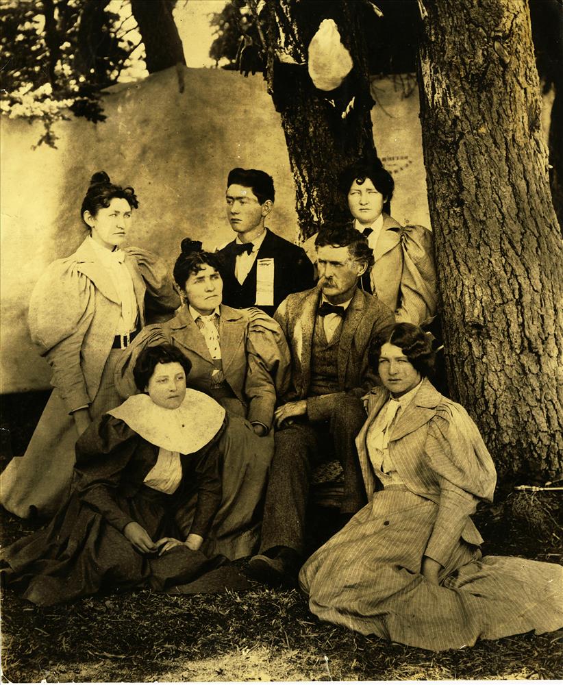 Ivan D. Applegate Family, Mt Mazama Celebration, tow row l-r, Alice A. Morey Al, Eda A. center Margaret A, Ivan A, bottom, Jessie A, Lena A