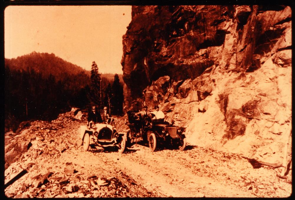 Motorists on first Rim Drive in Crater Lake NP, circa 1920