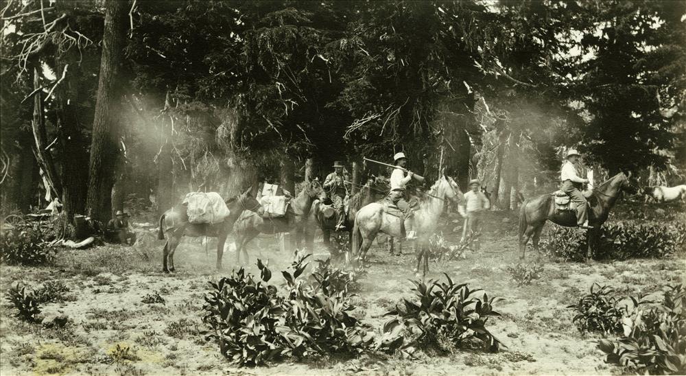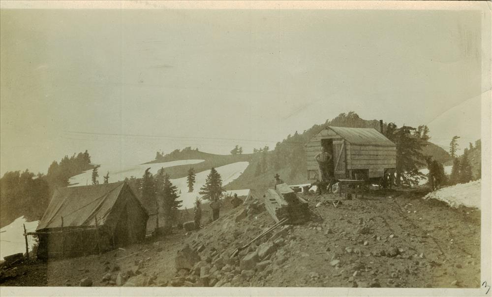 Road survey camp scene in Crater Lake NP, 1918 GV Robinson collection