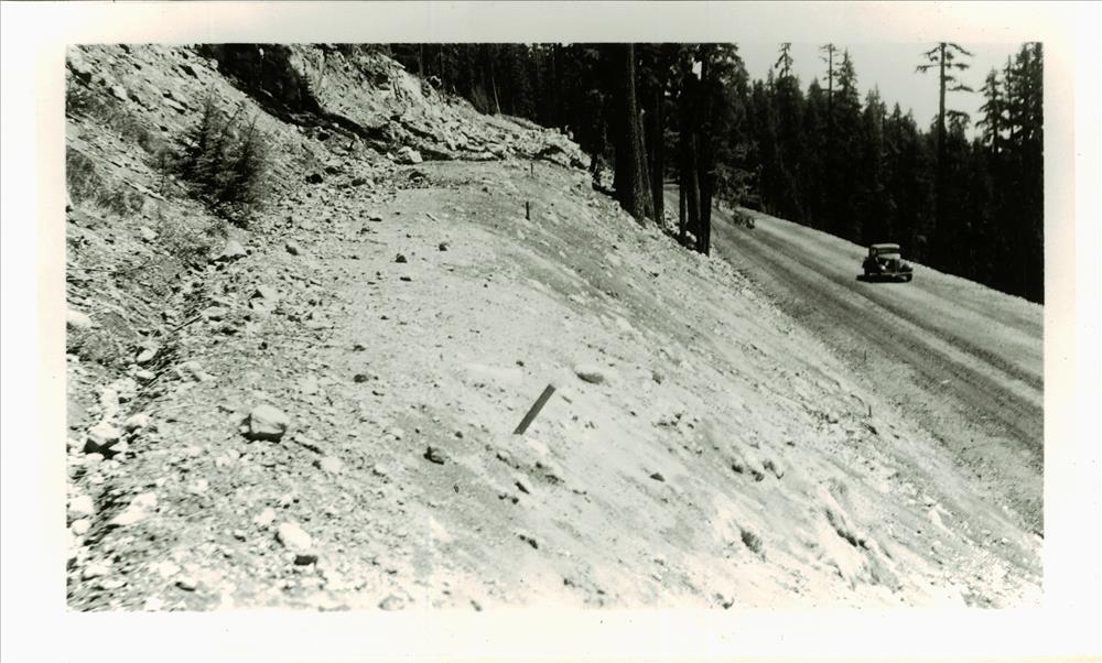 Showing new road alignment in Crater Lake NP, circa 1938 Francis Lange