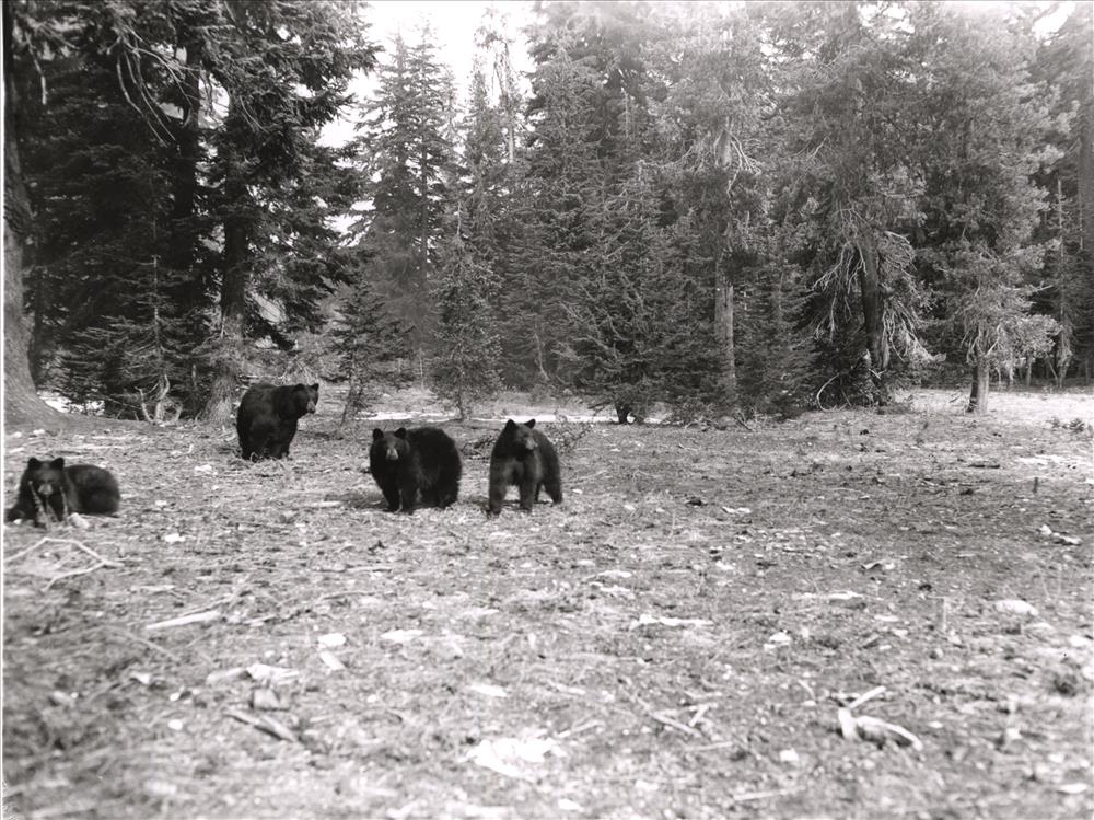 Mother bear and three cubs near Park Headquarters at winter garbage pit, Rundell photo