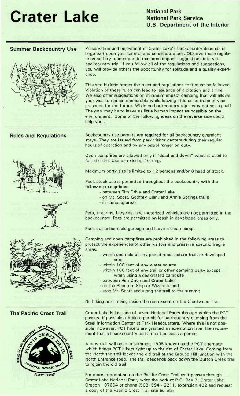 Crater Lake backcountry rules and regs 2