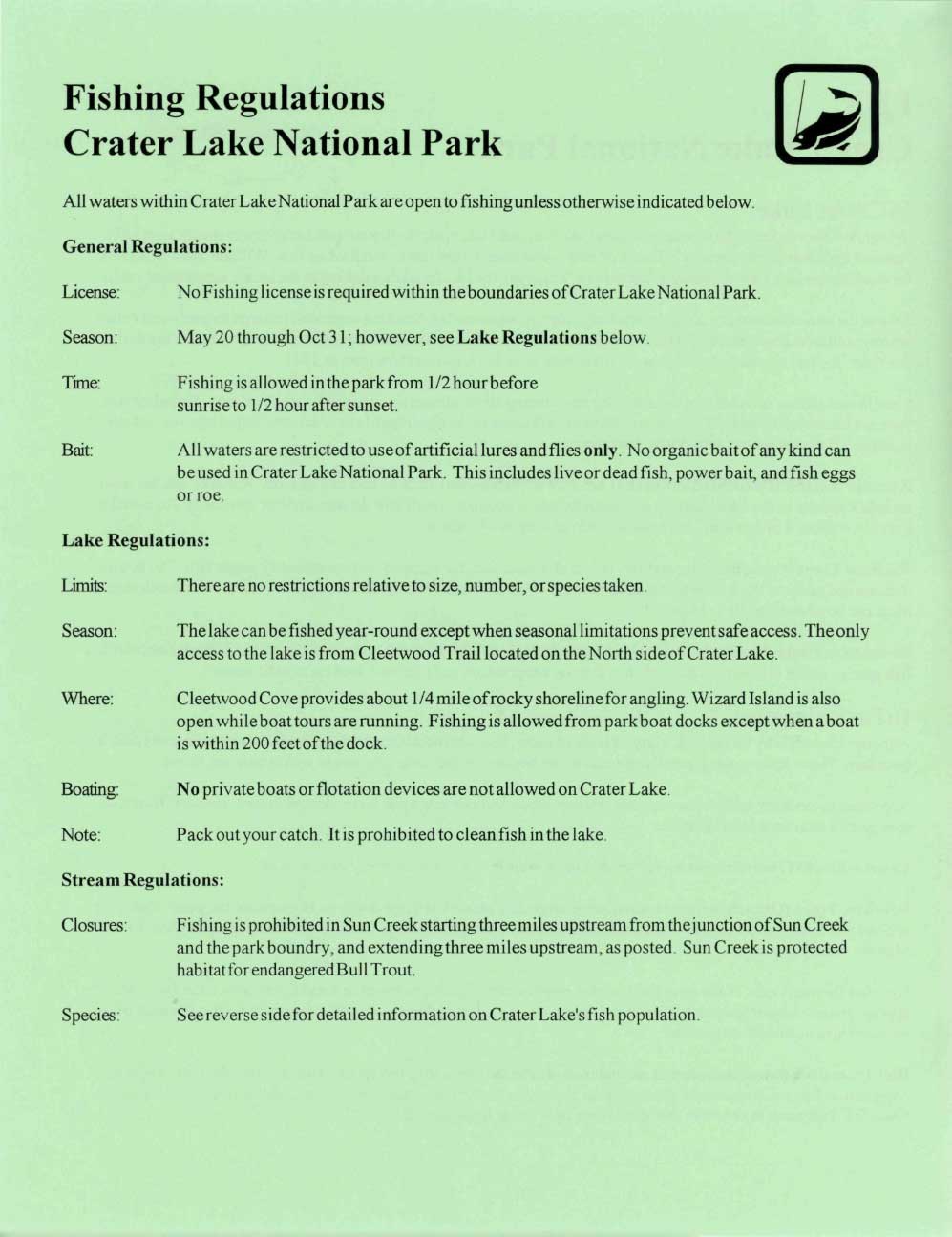 Leaflets – Fish Information and Rules date unknown