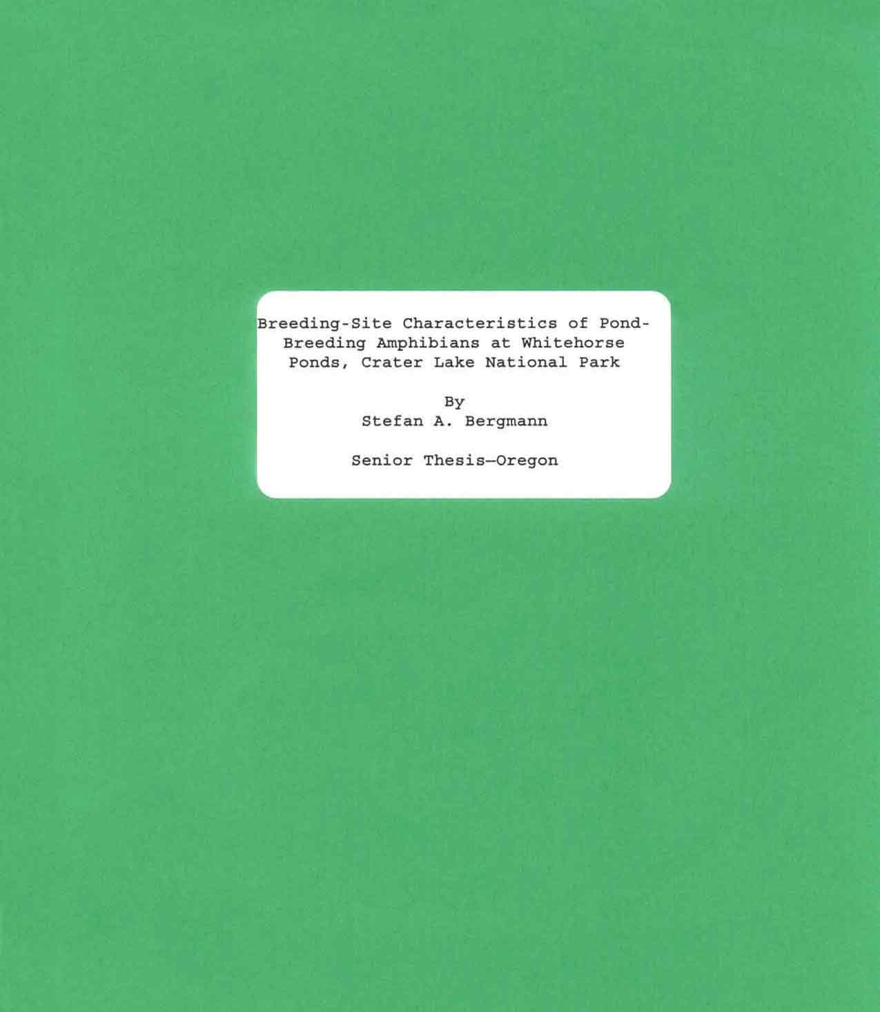 Breeding site characterists of Whilehorse Ponds Stefan Bergmann 1997
