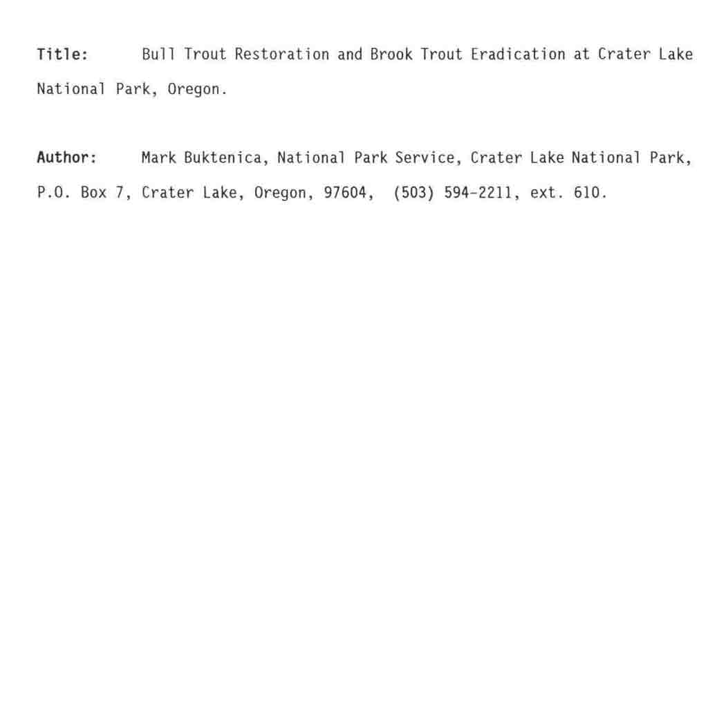 Complete PDF file: Bull Trout Restoration and Brook Eradication Buktenica 1994