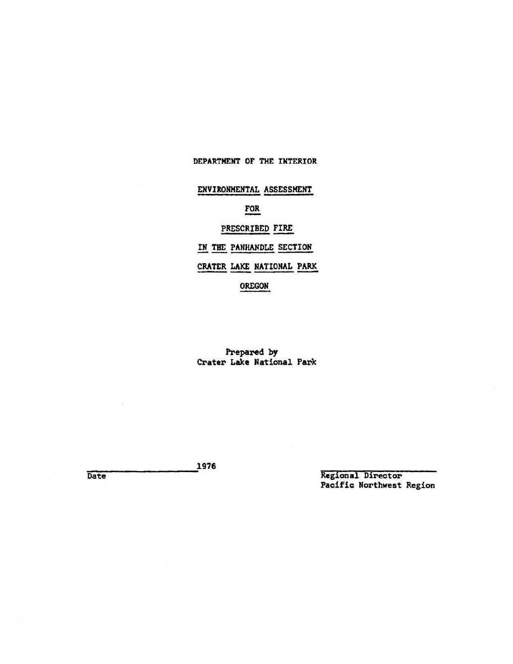 Environmental Assessment for Prescribed Fire in Panhandle – 1976