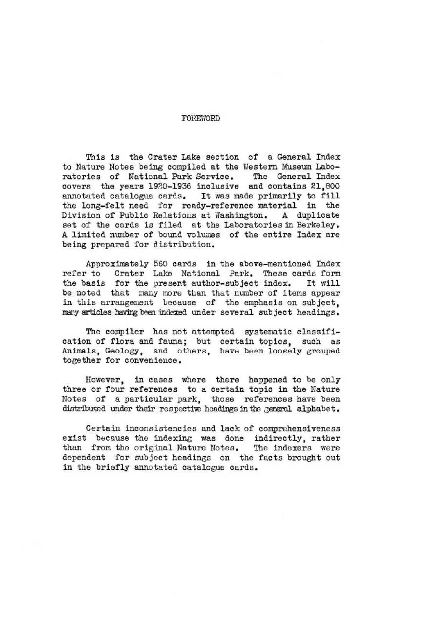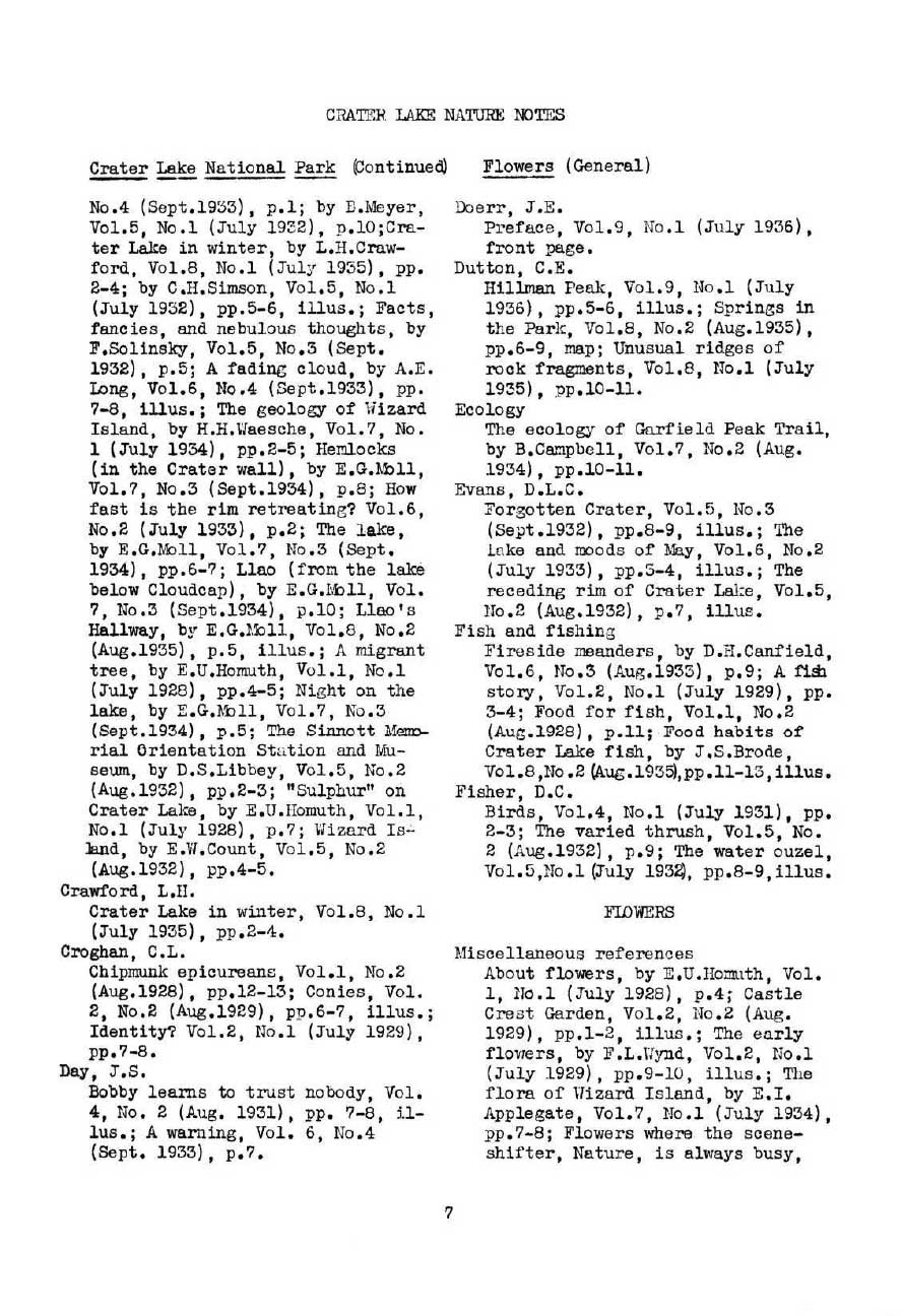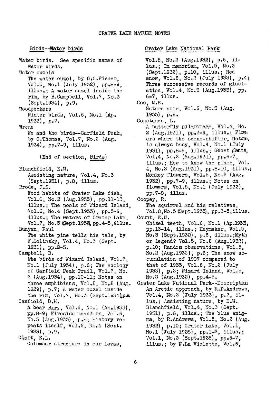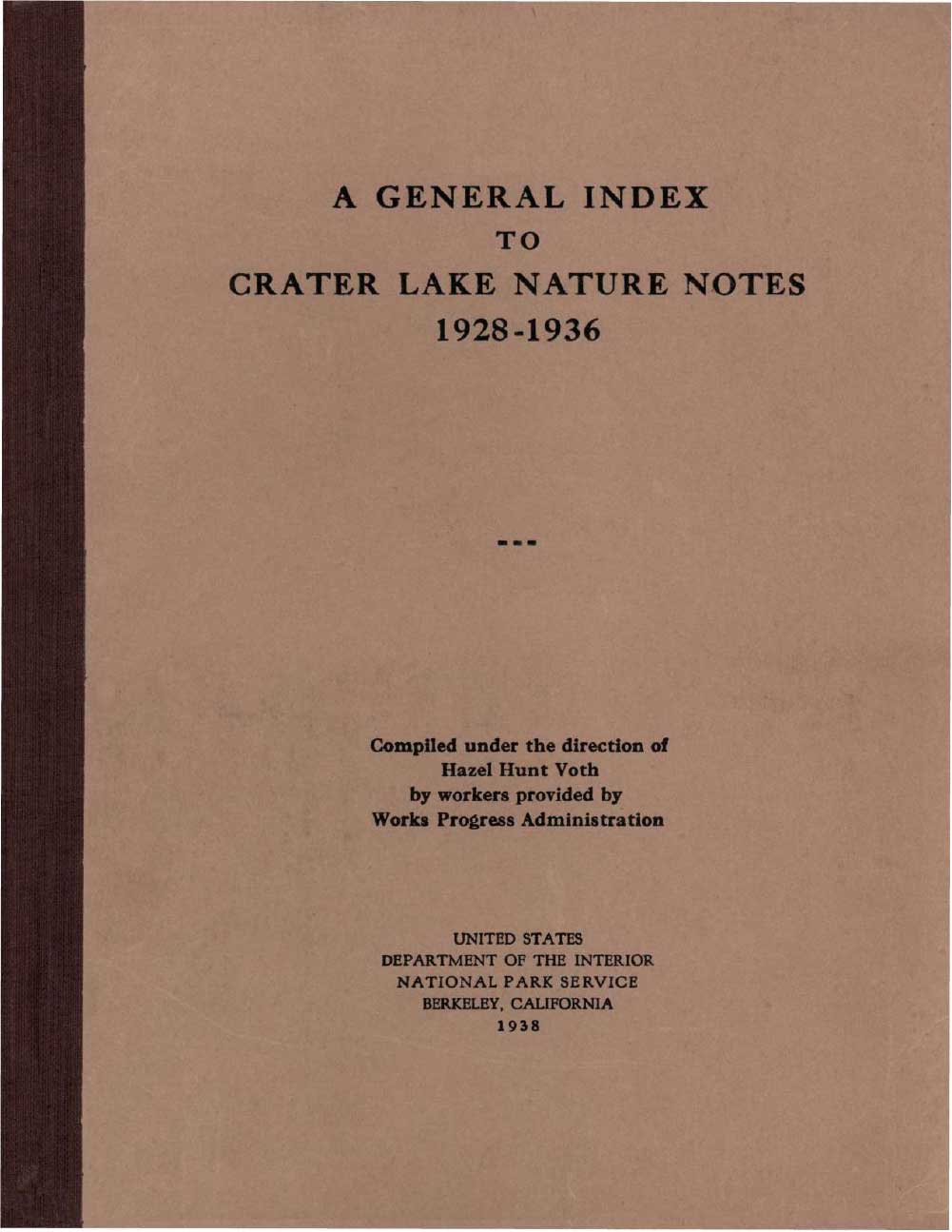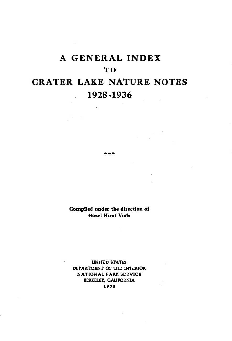 General Index Nature Notes 1928 – 1936 – Voth and WPA