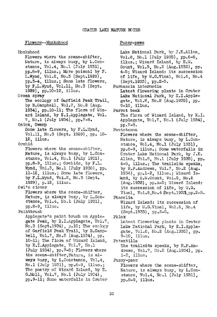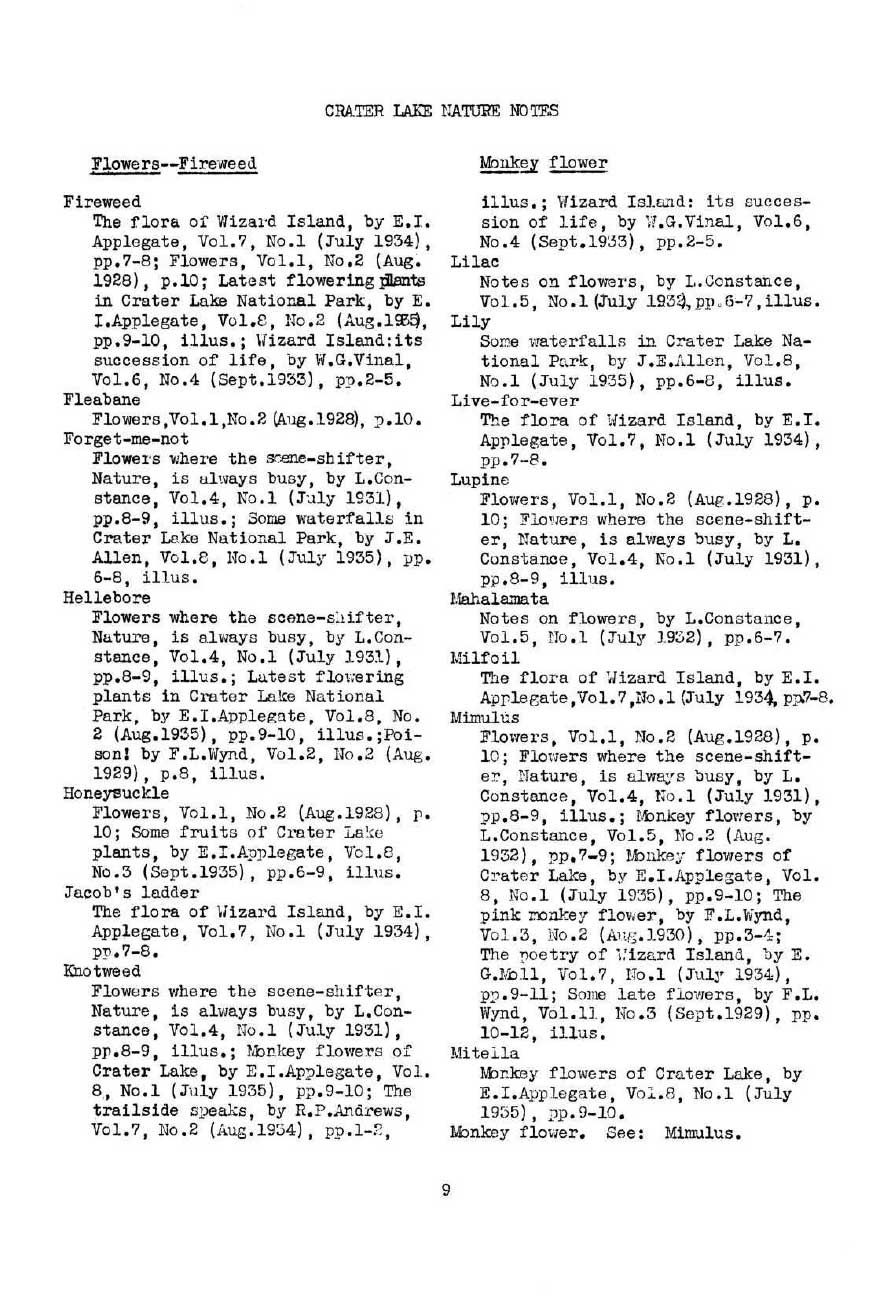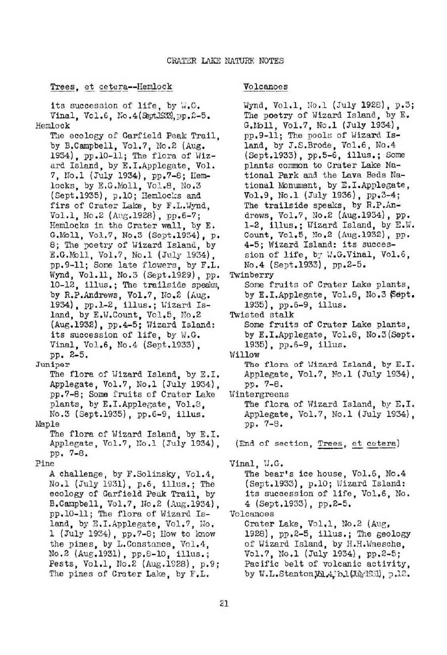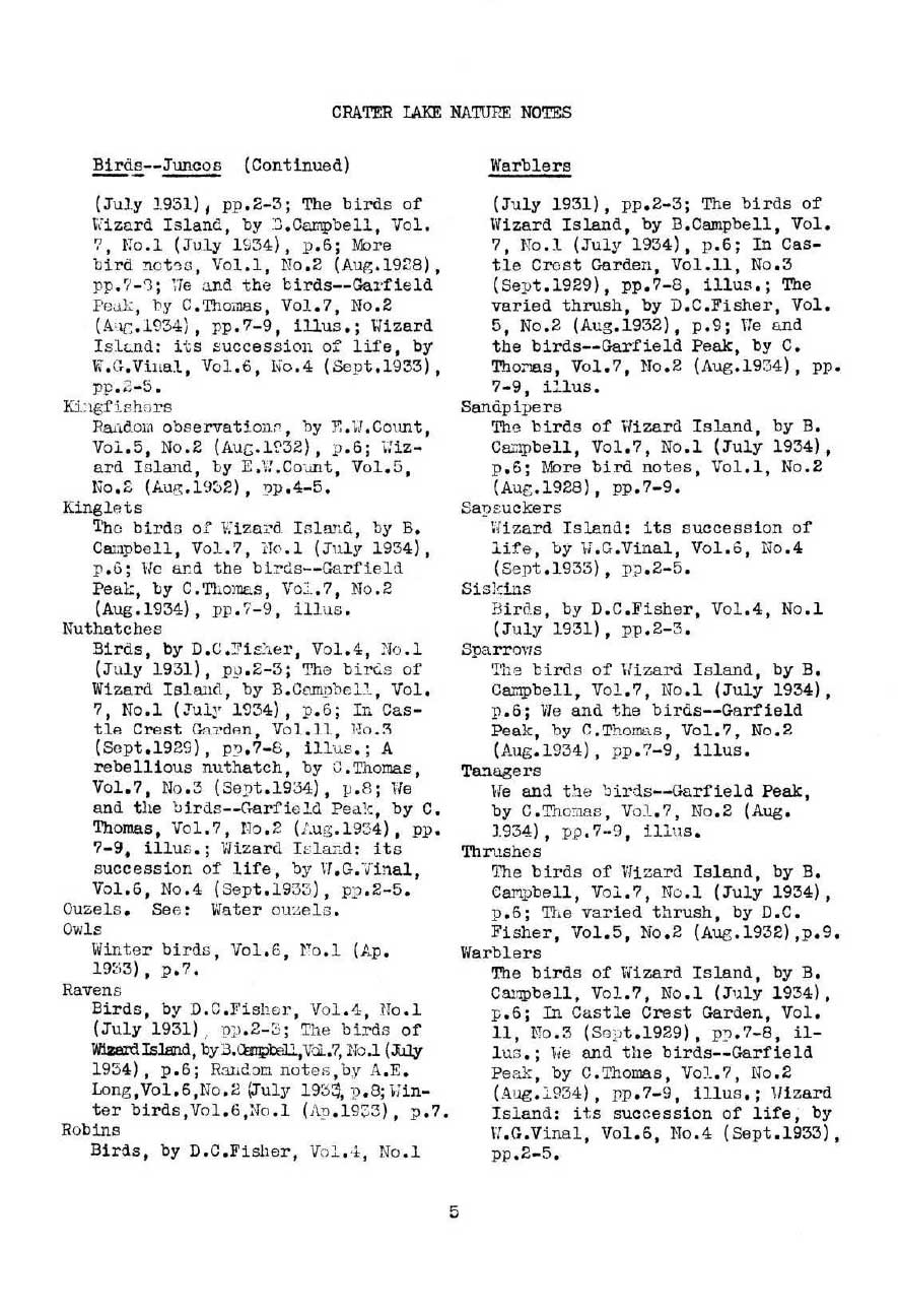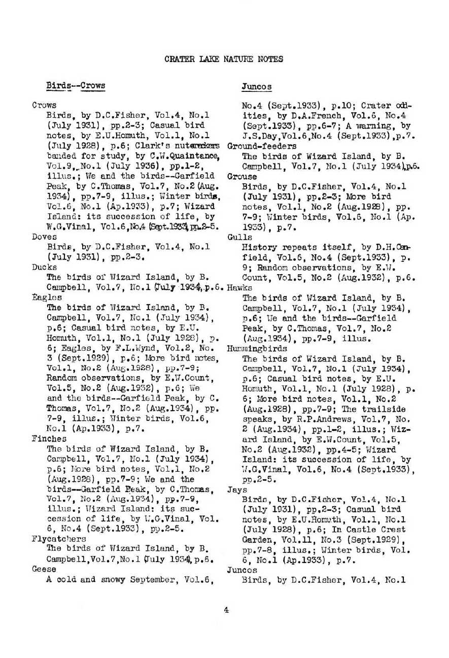 General Index Nature Notes 1928 – 1936 – Voth and WPA