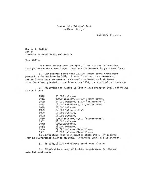 George Ruhle to Wallis Fish Planting 1951