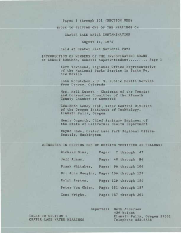 Hearings on Water Contamination 1975