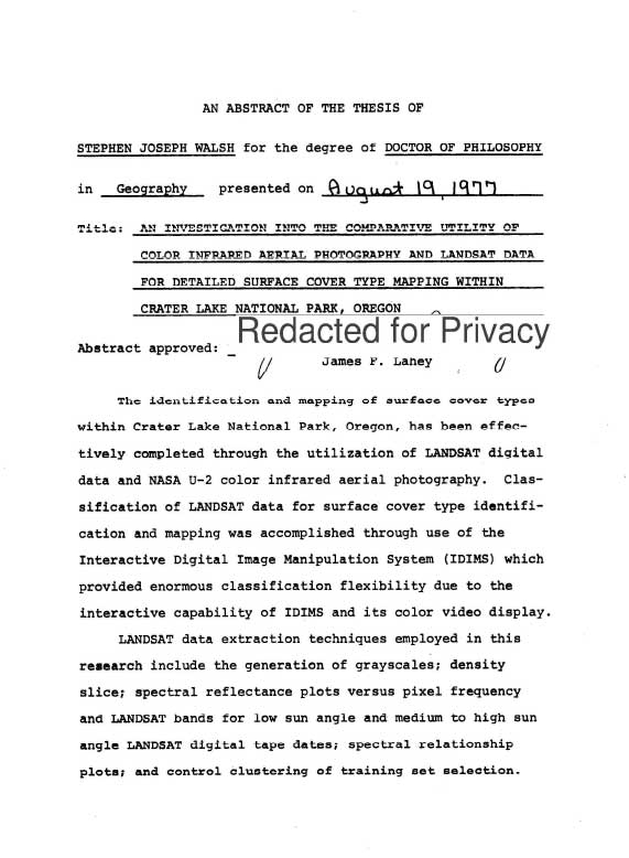 Investigation of Infrared Aerial Photography and LANDSAT – Stephen Walsh 1977