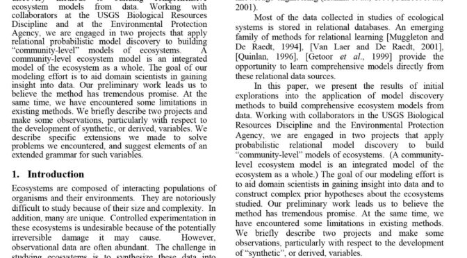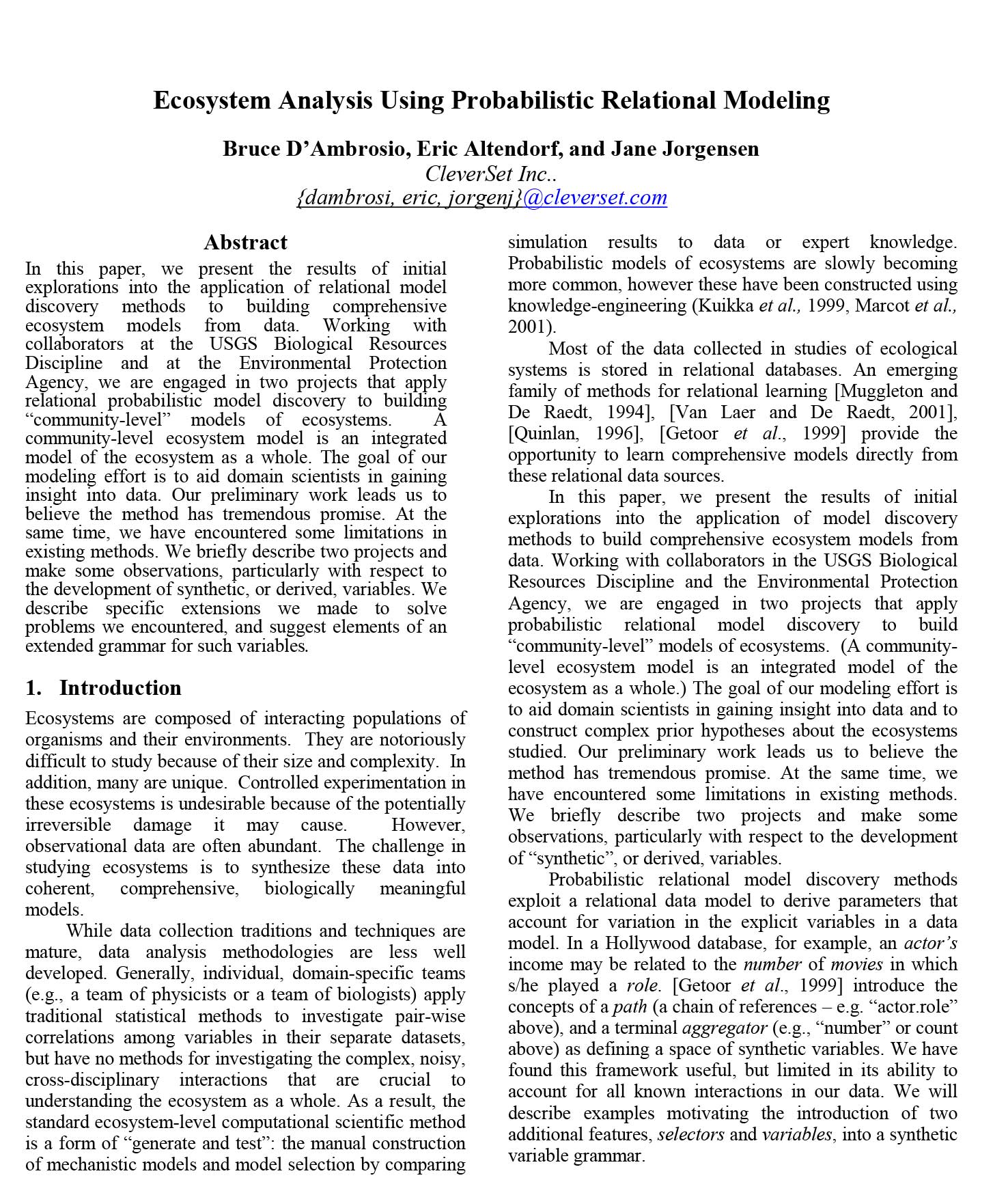Ecosystem Analysis Using Probabilistic Relational Modeling