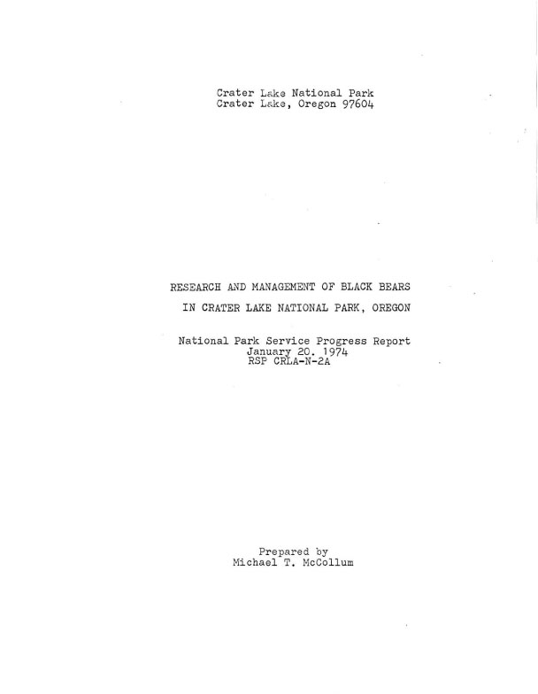 Research and Management of Black Bears in Crater Lake, 1974