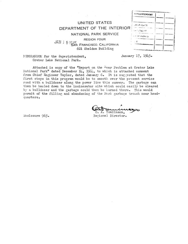 Report on the Bear Problem at Crater Lake National Park, December 14, 1945