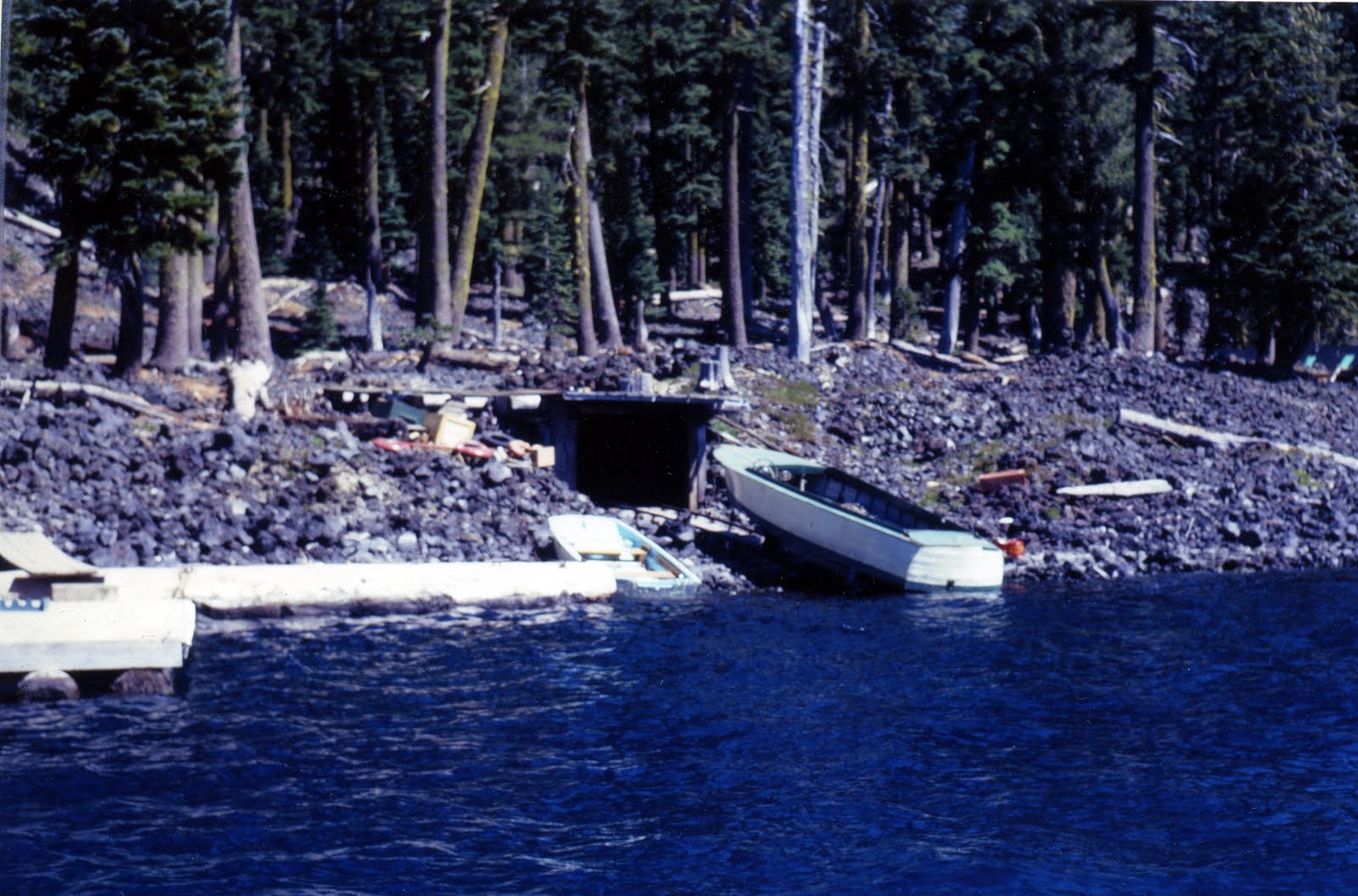Here are some photos that I took at Crater Lake in the summer of 1967. That summer, the Park Service decided to get rid of a boat that was stored on Wizard Island. Apparently the boat had been given to the Park Service years earlier to haul tourist around on Crater Lake. According to Dick Brown, Chief Park Naturalist, the boat had been used to smuggle alcoholic beverages from Cuba to Florida during the Prohibition Era. The boat was intercepted by the Coast Guard, confiscated, and later given to the Park Service.