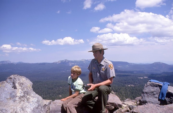 Nature Note: Union Peak is the core of an old volcano eroded by glaciers during the last Ice Age. It is the most conspicuous feature in the southwestern portion of the park, its summit being 7698 feet above sea level and over 1000 feet above the general level of the adjacent area. The upper 800 feet of the peak stands as a rock spire above a ridge-like base which is the drainage divide between Union Creek to the north and Red Blanket Creek to the south, both streams being tributaries of the Rogue River.